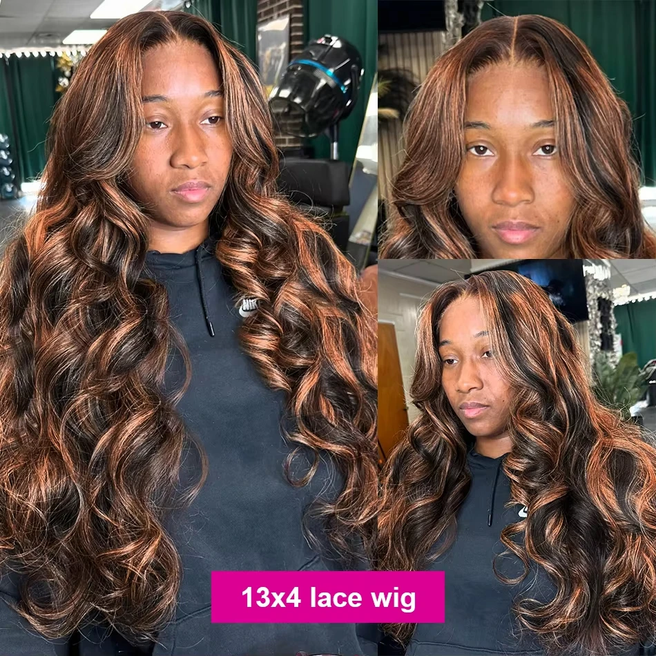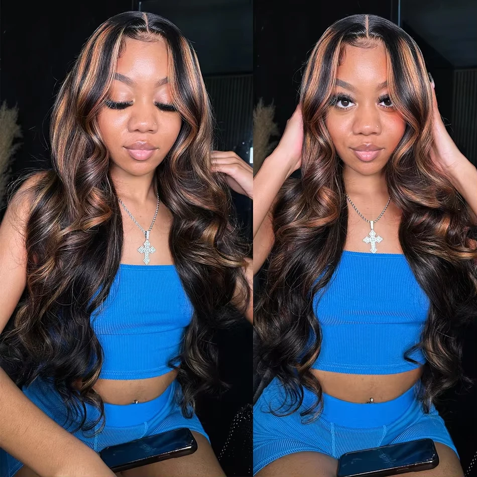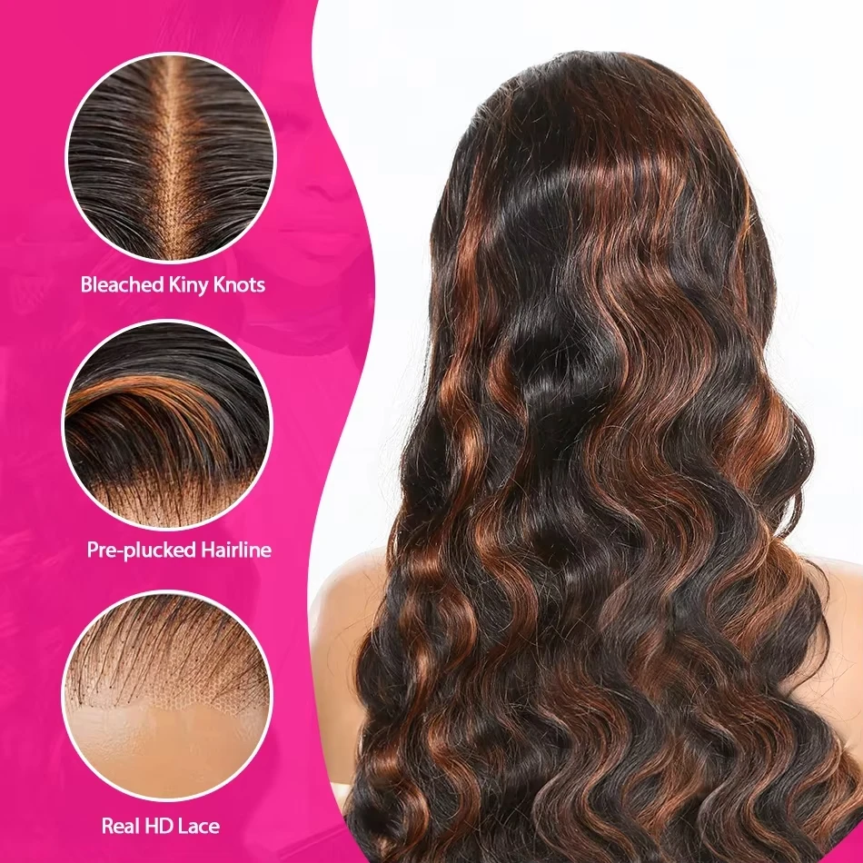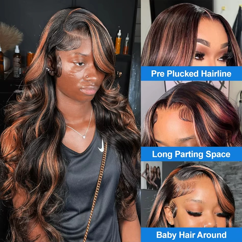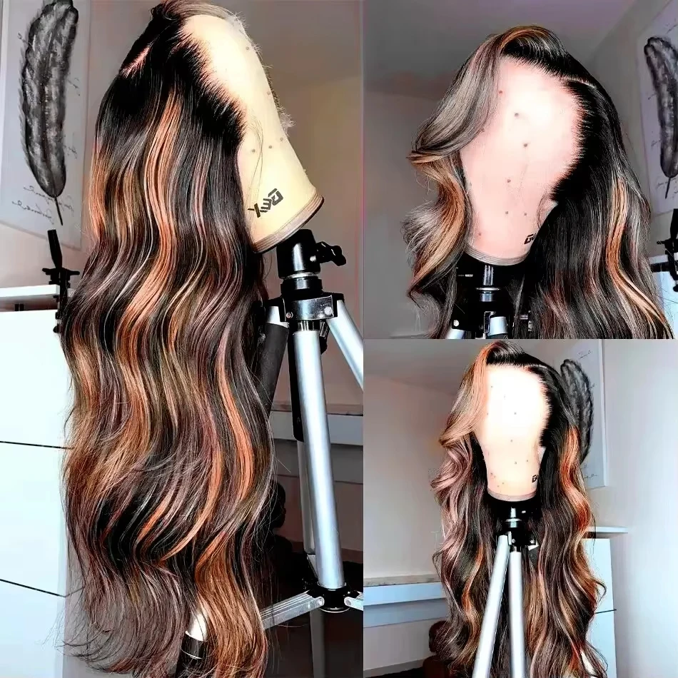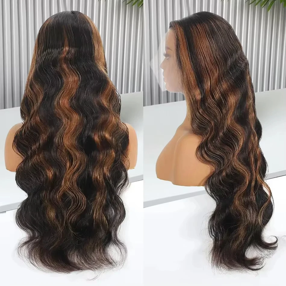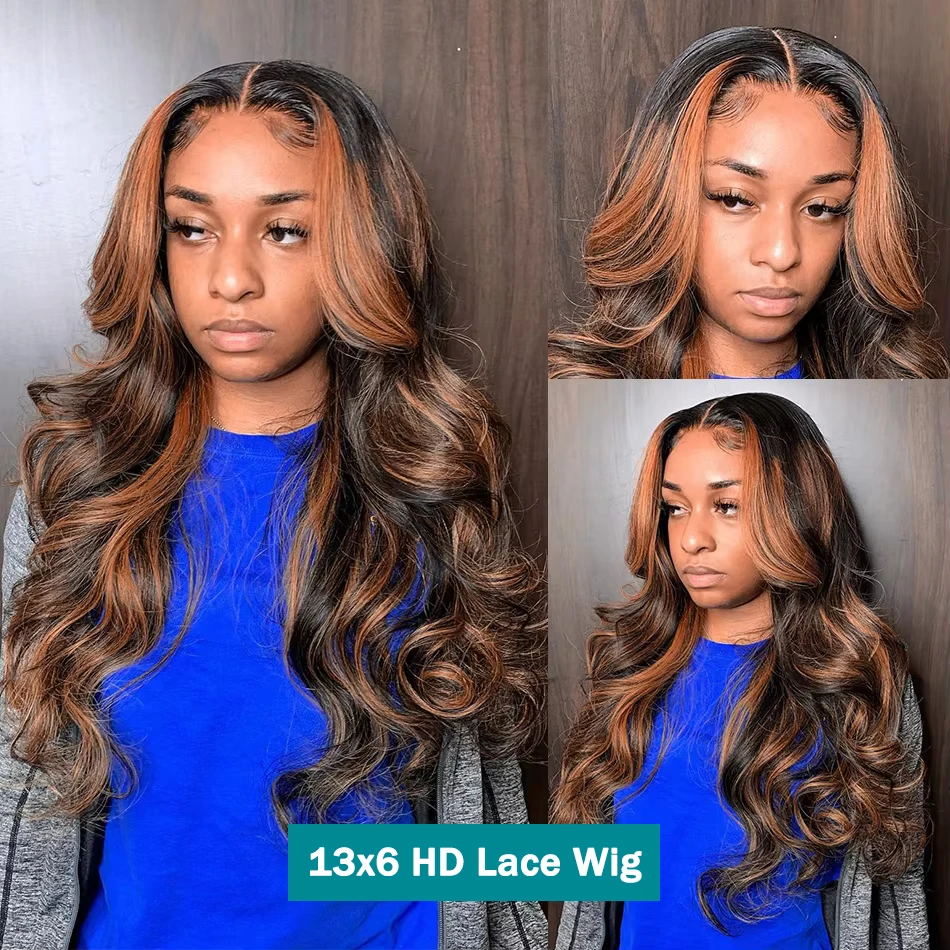 Ombre Highlight 13X6 HD 300% 1B/30 Black Brown 30 32 Inch Body Wave Lace Front Human Hair Wigs Transparent 13×4 Lace Frontal Wig
