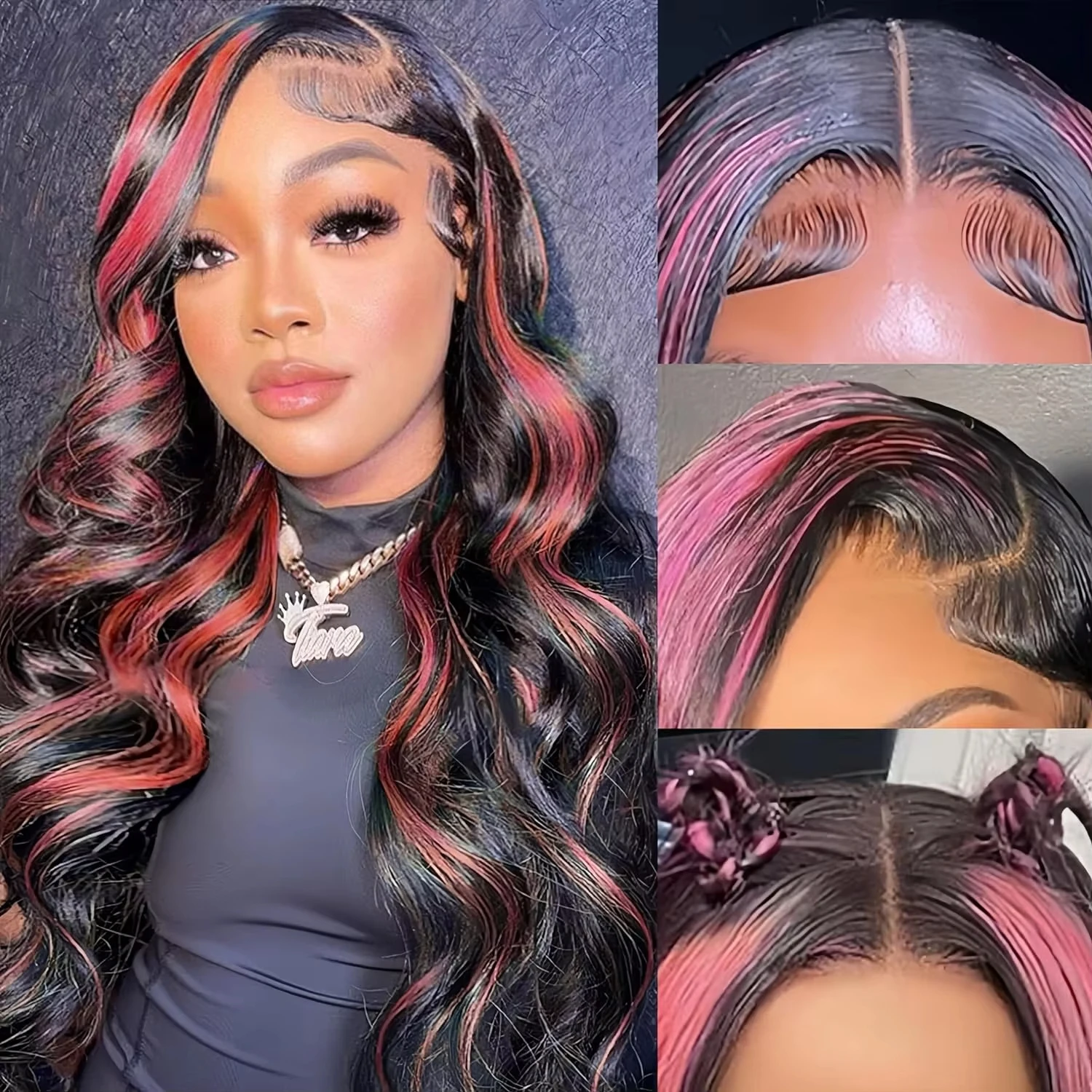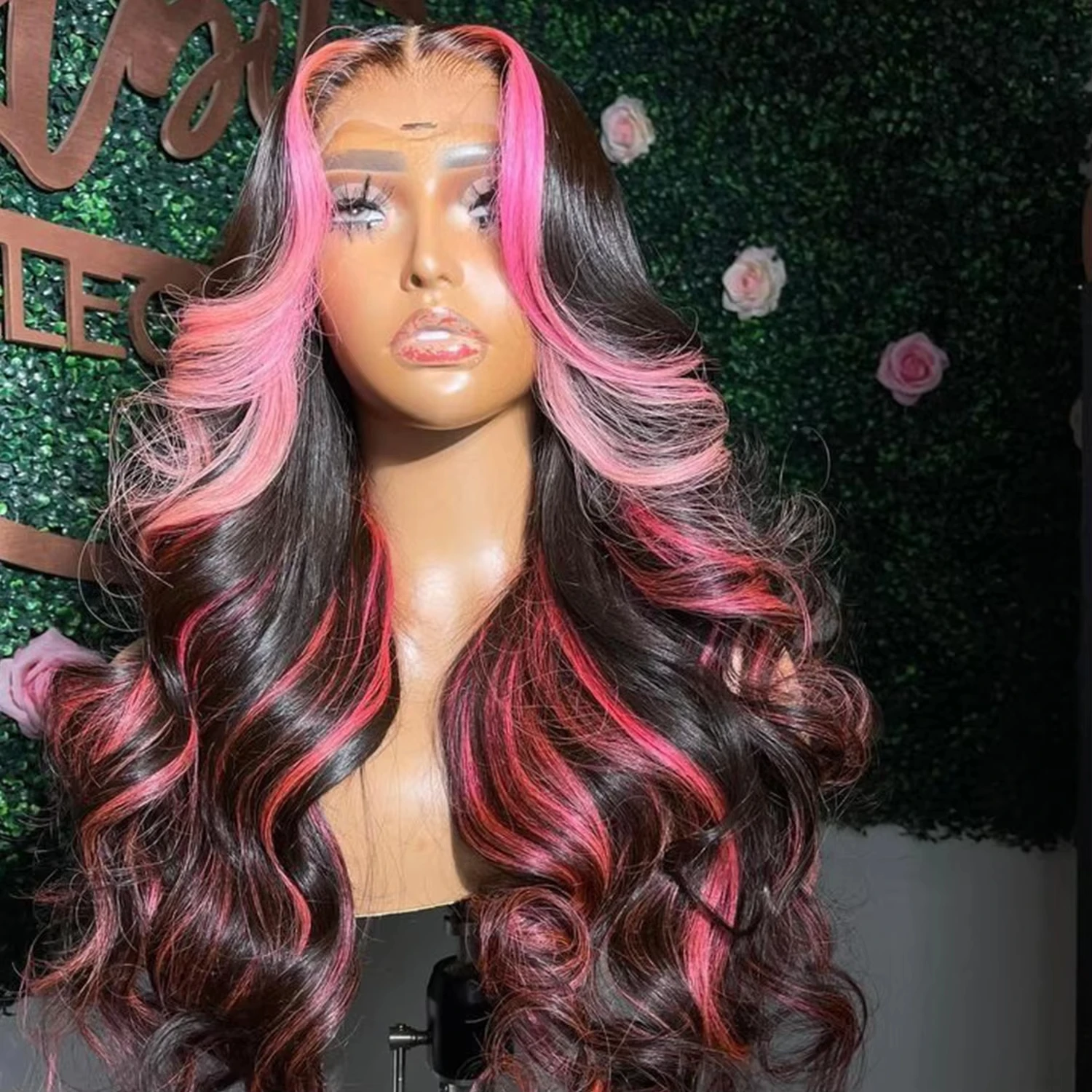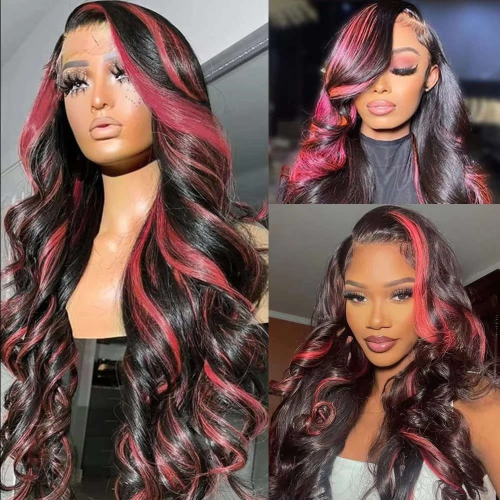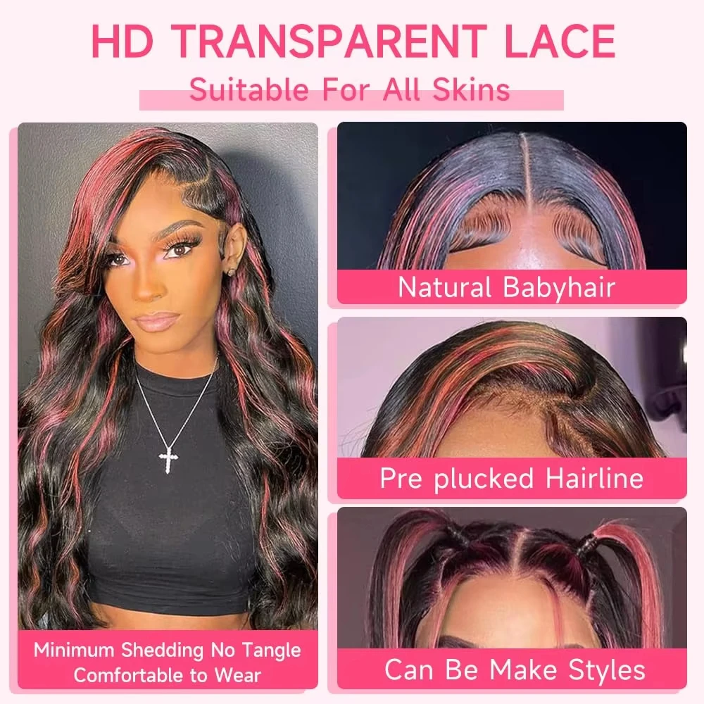Ombre Highlight 1B With Pink Hair Wig Body Wave Wigs Transparent 13X4 Lace Frontal Wig Brazilian 100% Human Hair Pre Plucked
