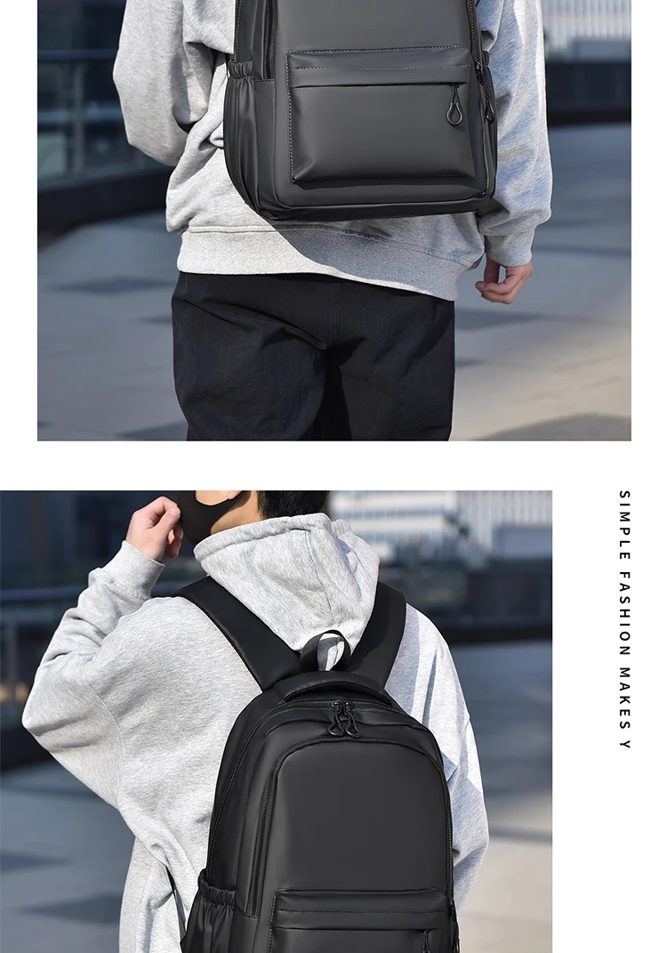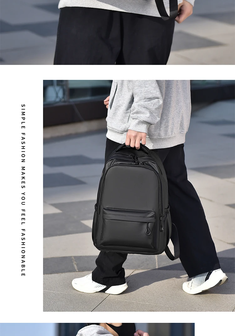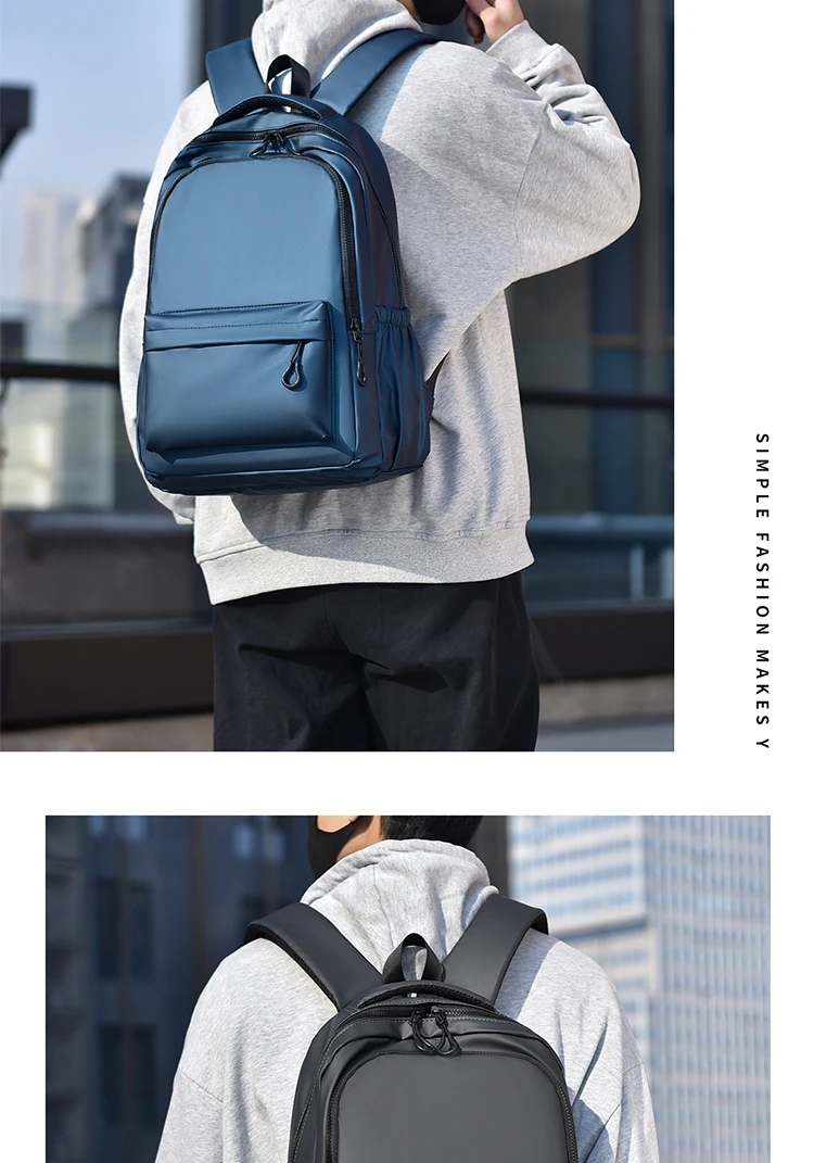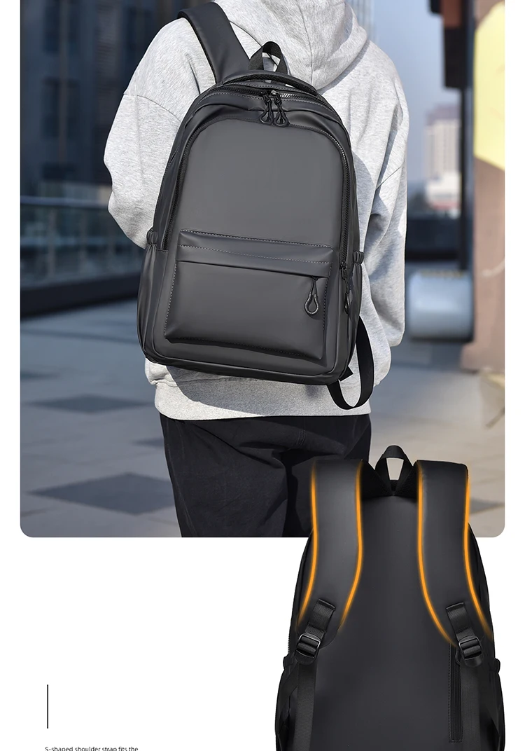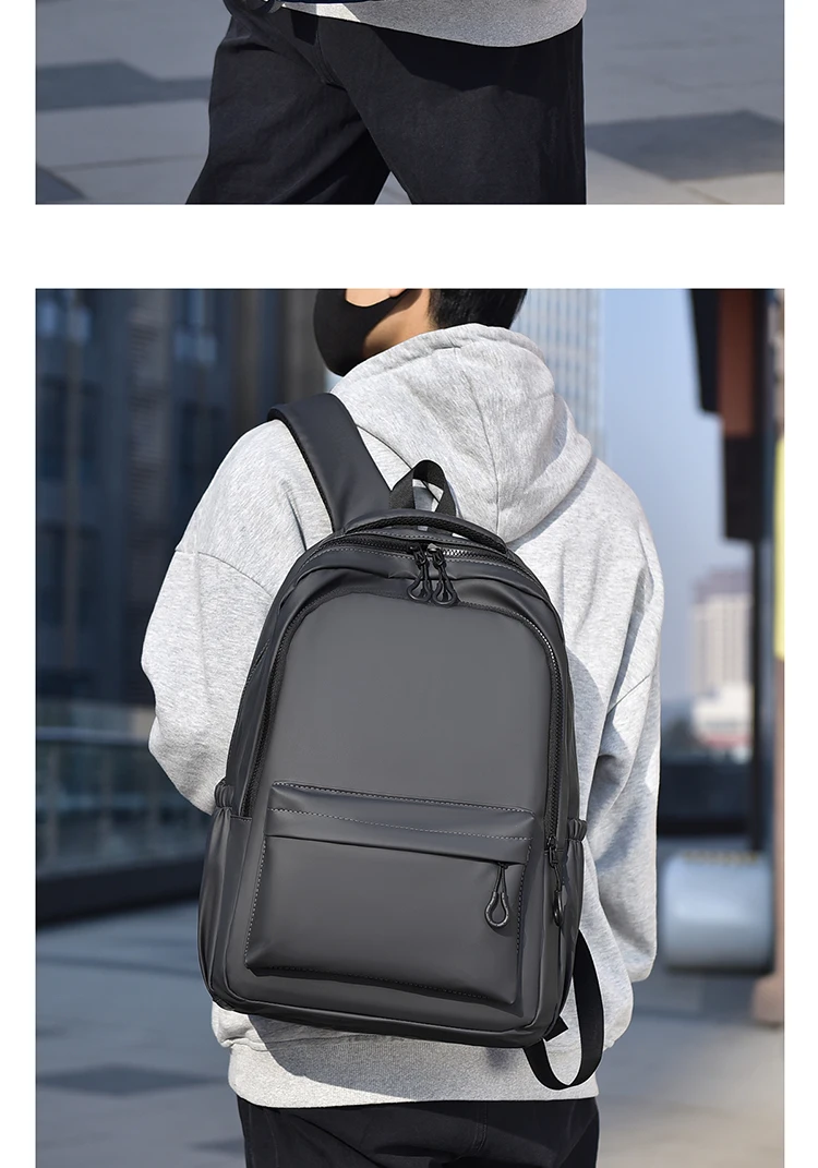 One 15.6 “Large Capacity Pvc Men’s Business Solid Color Backpack Unisex Commuter Travel Laptop Backpack Student School Bag