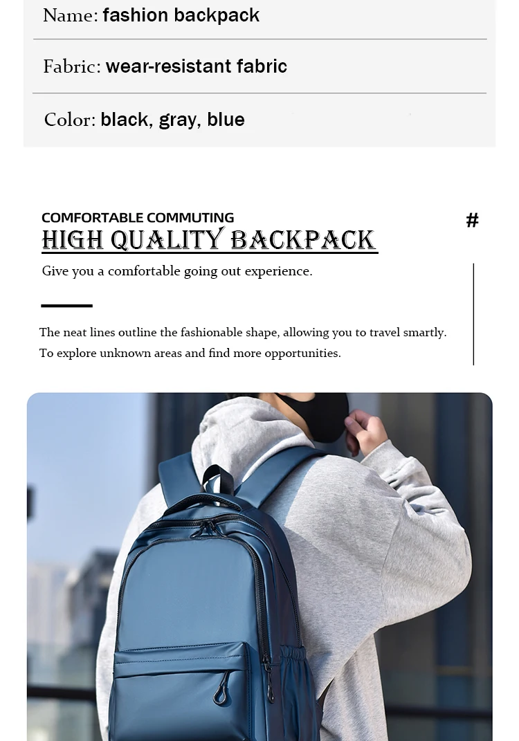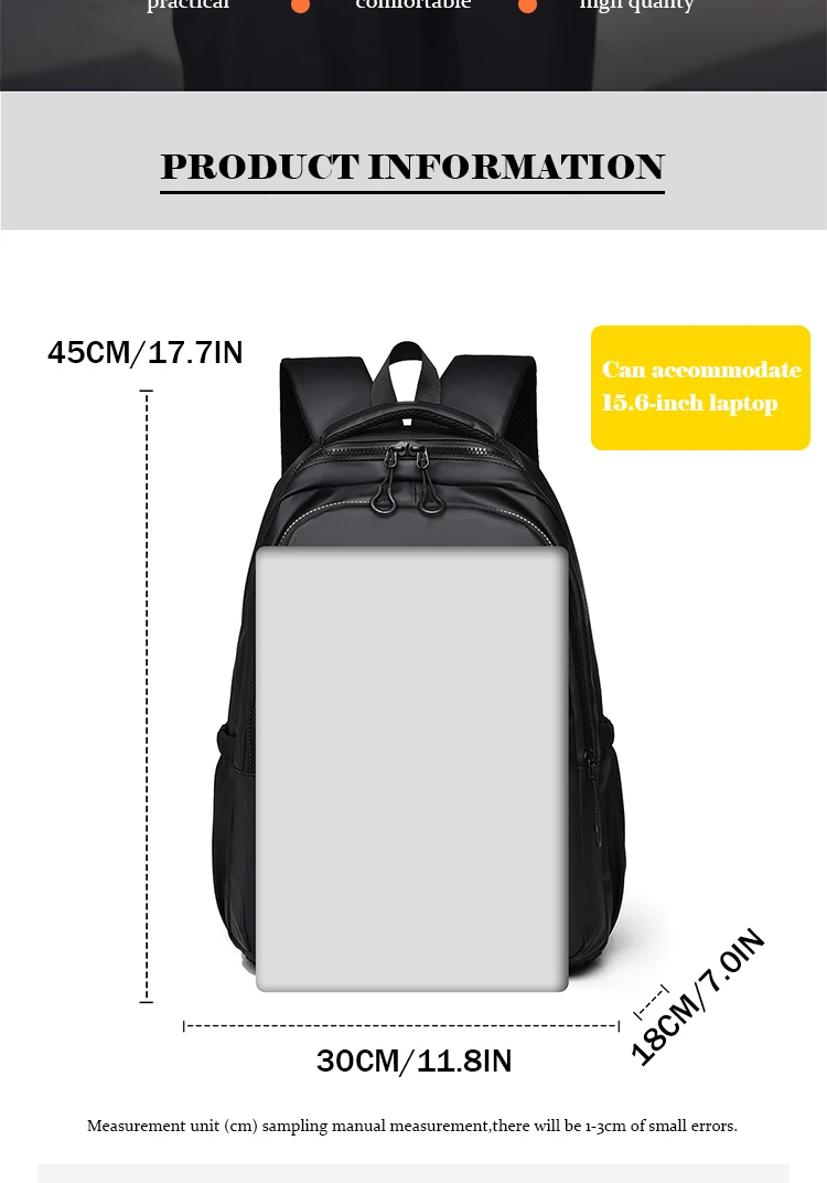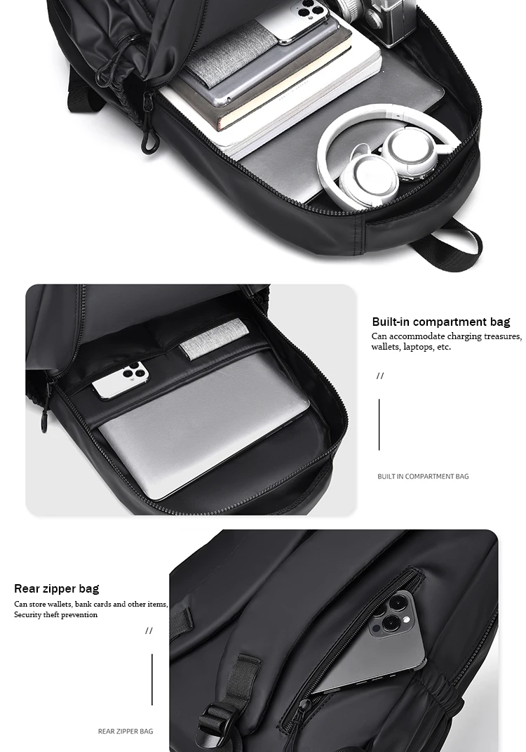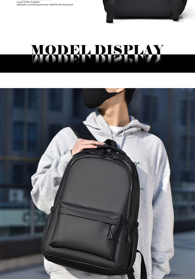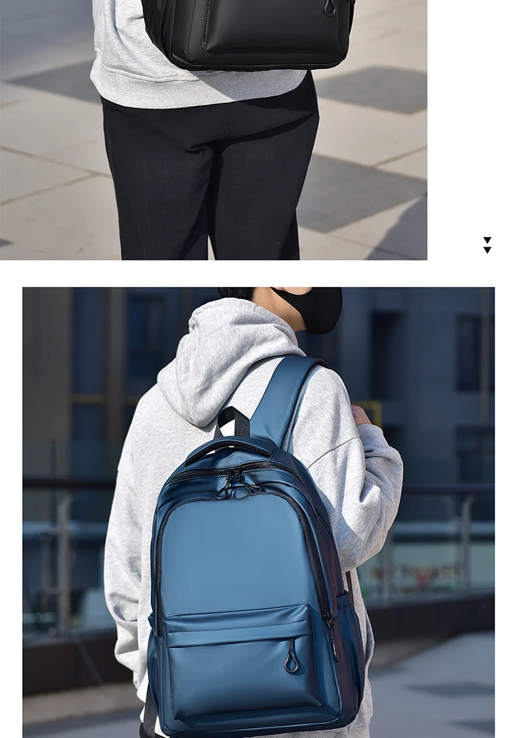 One 15.6 “Large Capacity Pvc Men’s Business Solid Color Backpack Unisex Commuter Travel Laptop Backpack Student School Bag