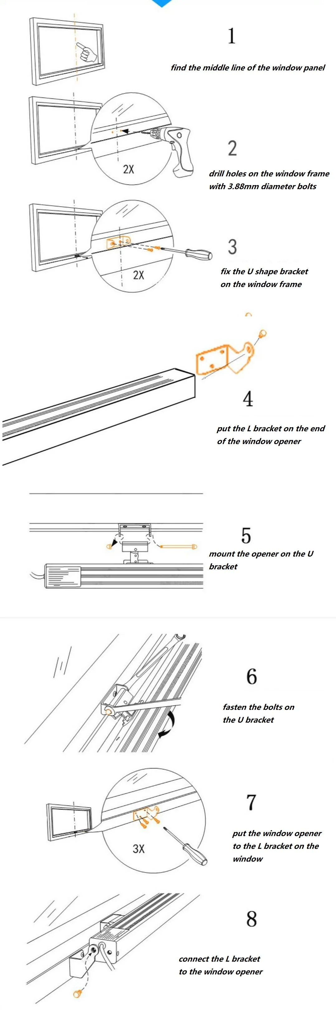 option 3 includes 1 unit black window opener 400mm (the body length is 470mm);