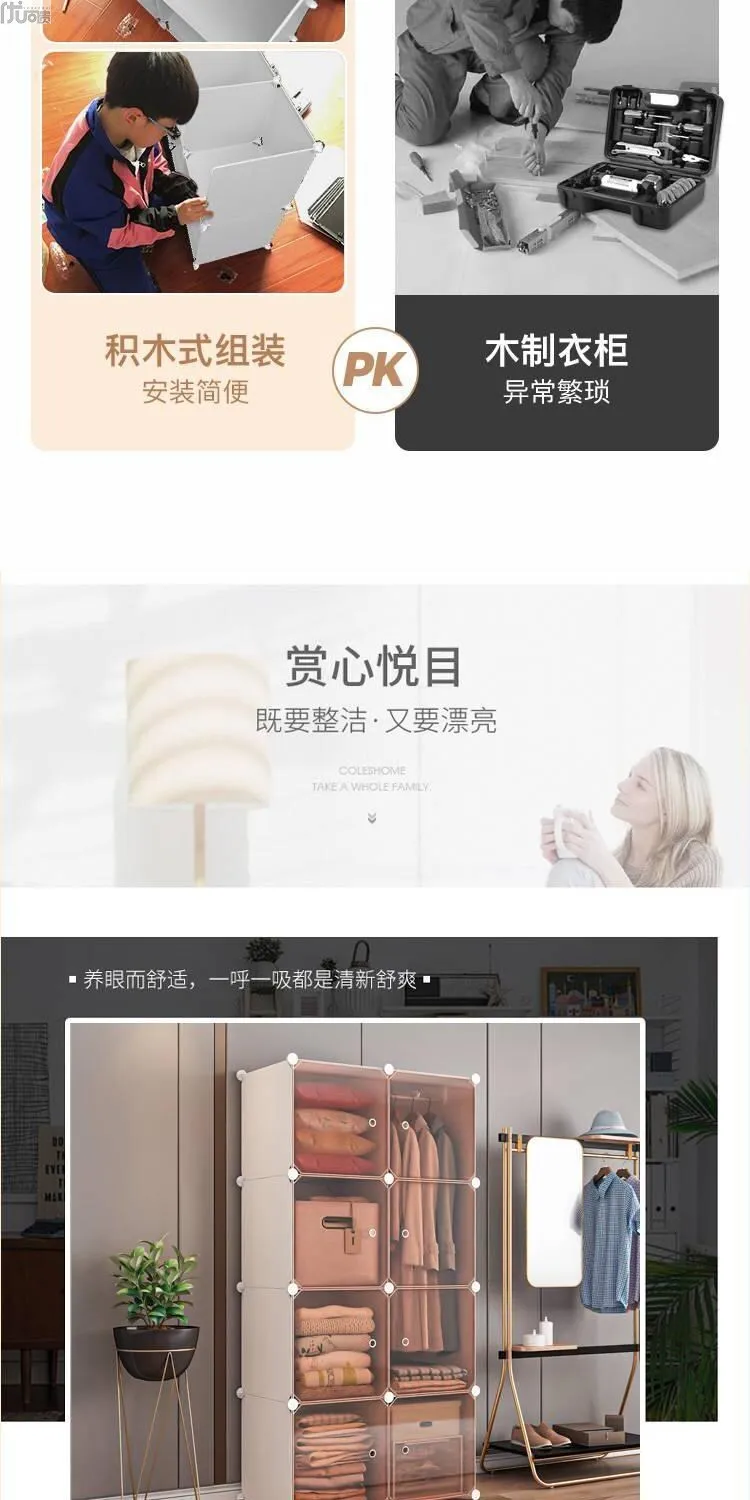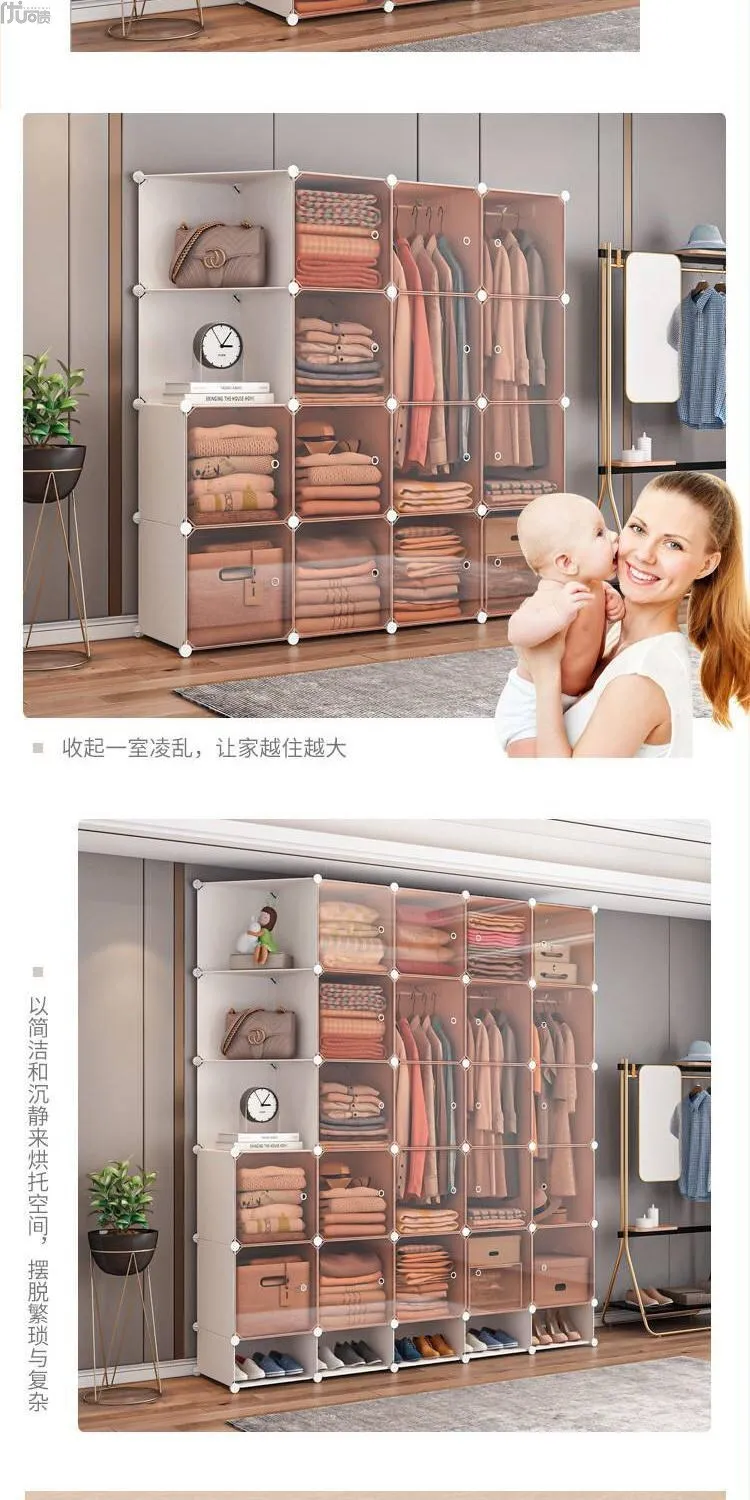 [Quality Insurance · Extremely Fast Refund] Wardrobe Household Bedroom Hanging Storage Cabinet Transparent Door Plastic Simple Cloth Wardrobe Assembly Rental Room Simple Cabinet