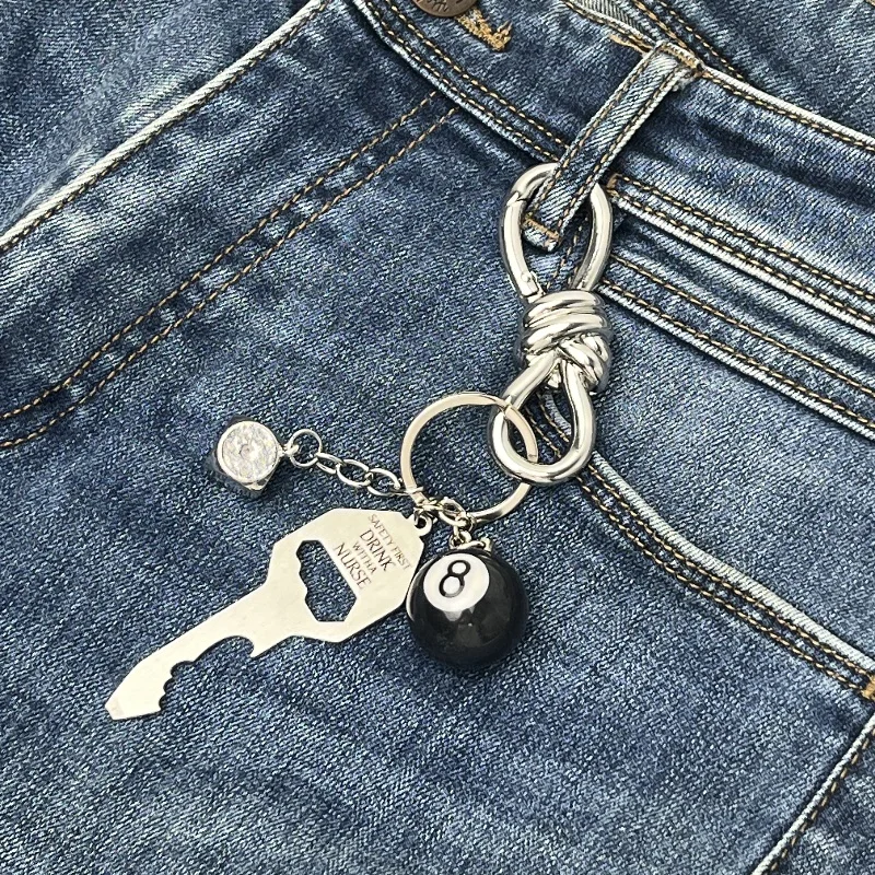 originaDIY Metal keychain Fashion waist decoration Backpack ornament Lucky Dice Black 8 Portable bottle opener Men’s small gifts
