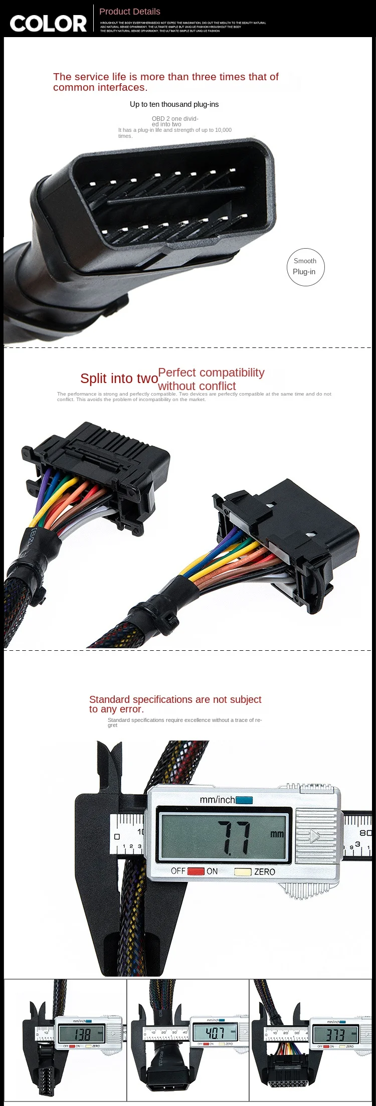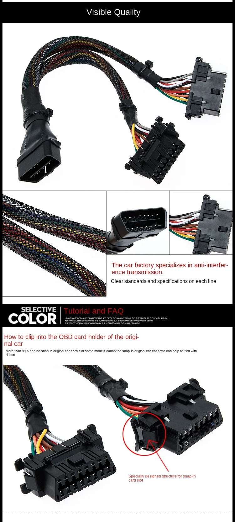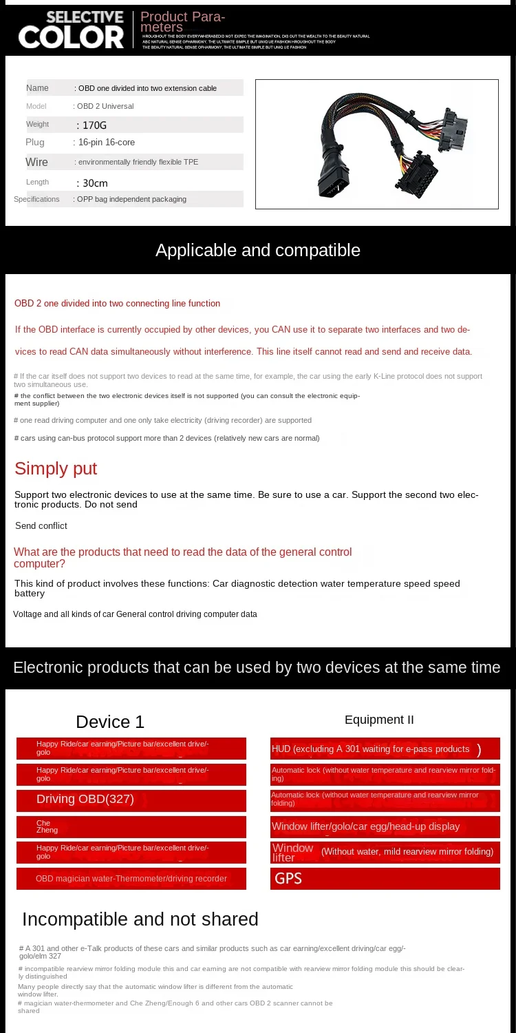 Original Car Diagnostic Tools OBD2 Two Code Wires Conversion Interface One Tow Extension Cables And Connectors For Automotive