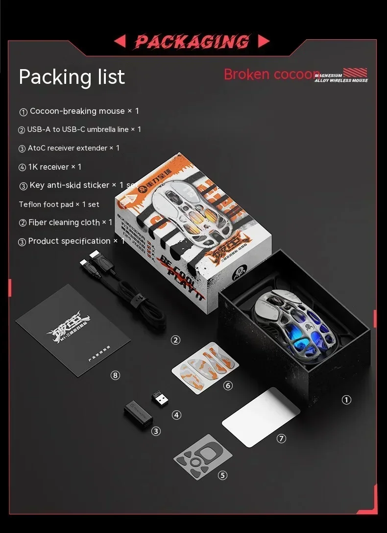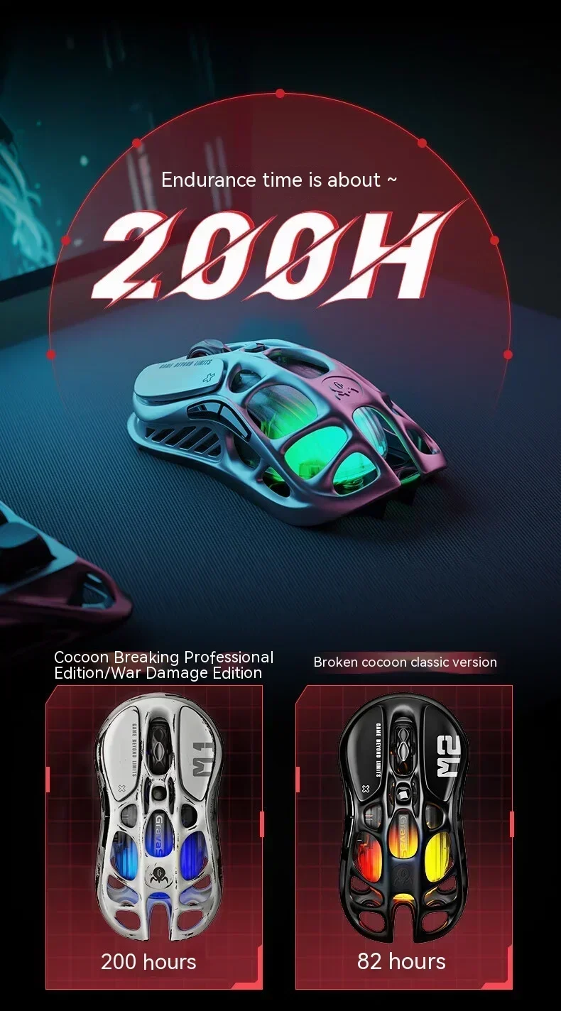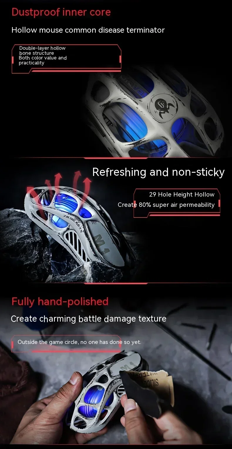Battle-Worn Alloy Elegance: The Fusion of Durability and Design – Step into the gaming arena with the M1 Pro’s battle-worn magnesium alloy body. This mouse is not just a device; it’s a statement. The hollowed-out design doesn’t just capture eyes; it ensures your hand stays cool and responsive under pressure, marrying relentless durability with lightweight agility.