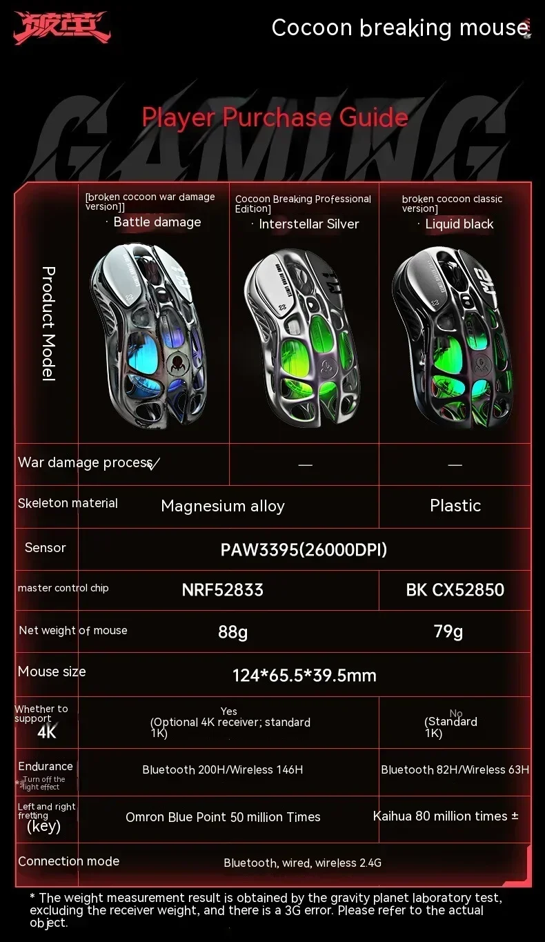 Hyper Precision Sensor: The Art of Unseen Advantage – Dominate the gaming world with a up to 4K polling rate and a staggering 26,000 DPI sensor. PAW3395 provides ultra-smooth cursor movement and pinpoint accuracy, giving you the unseen advantage in every skirmish, every battle.