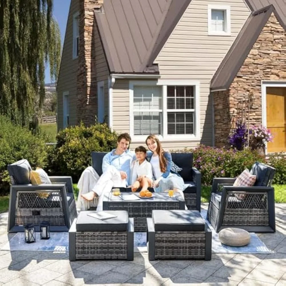 - 【Sleek All-Aluminum Frame 】- Crafted with a reinforced heavy-duty aluminum frame, our patio furniture sets boast a lightweight yet sturdy structure. It is resistant to fading, rust, and corrosion in all weather conditions, so it perfectly suits your outdoor needs.