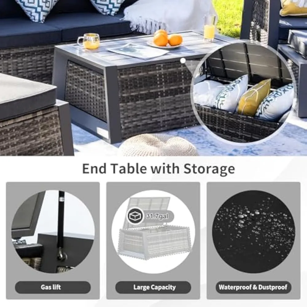 7 Pieces Patio Furniture Set, Wicker Sectional Sofa Set Rattan Modular Patio Conversation Sets with Cushions Couch Set & Table