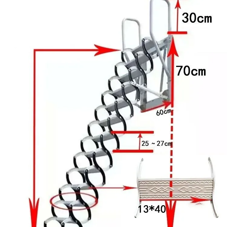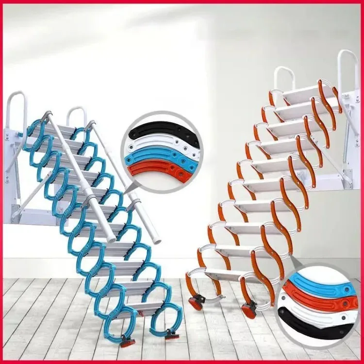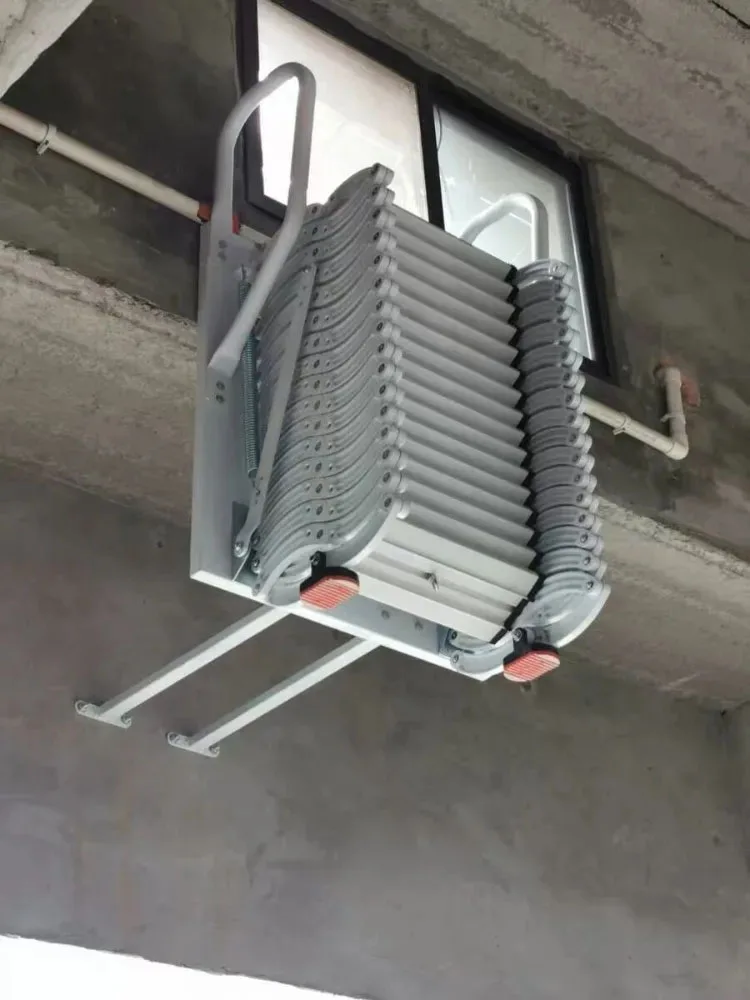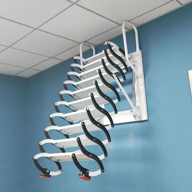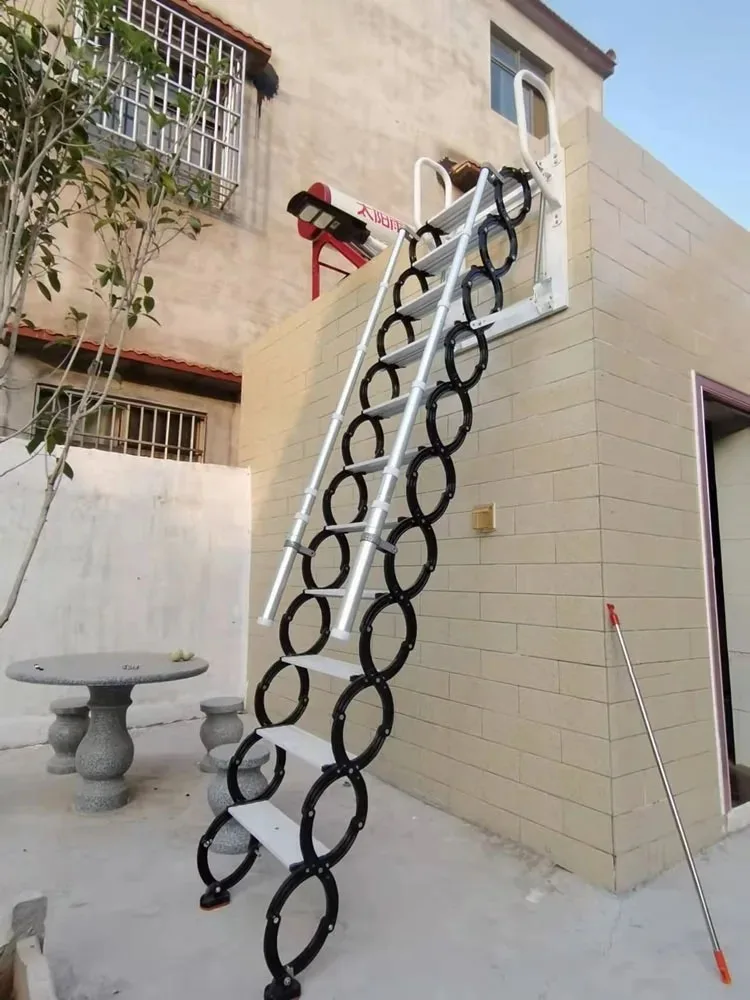 Outdoor Wall-mounted Telescopic Step Ladder carbon steel Lift Ladders for Home Indoor Space-saving Attic Telescopic Staircase