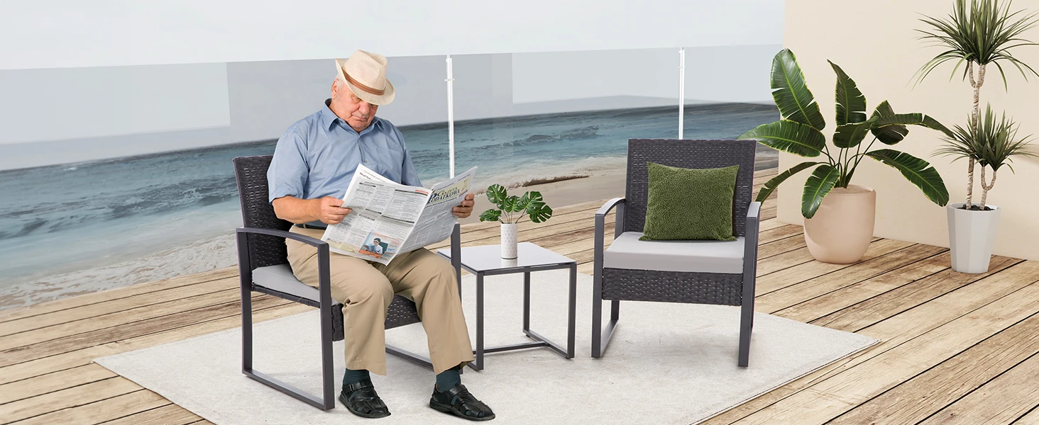 Our 3 pieces patio set features a high load-bearing capacity thanks to the use of premium steel plates and delicate parts, making it durable.