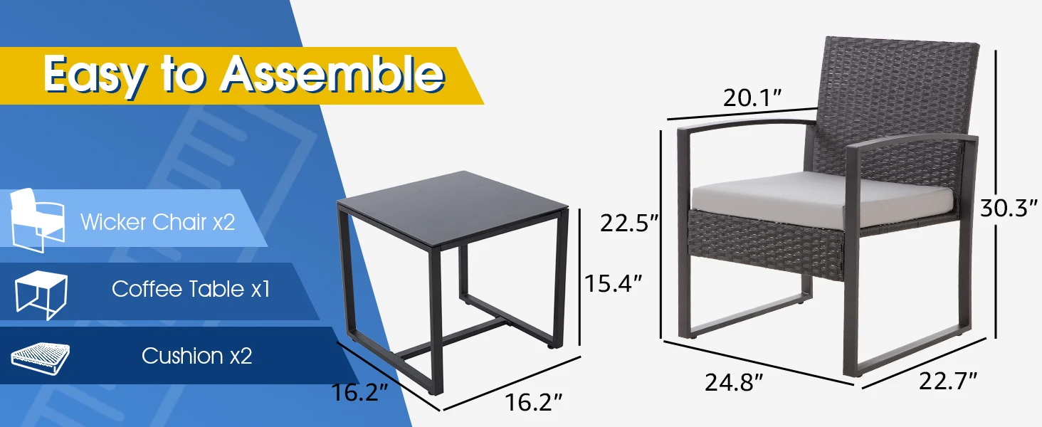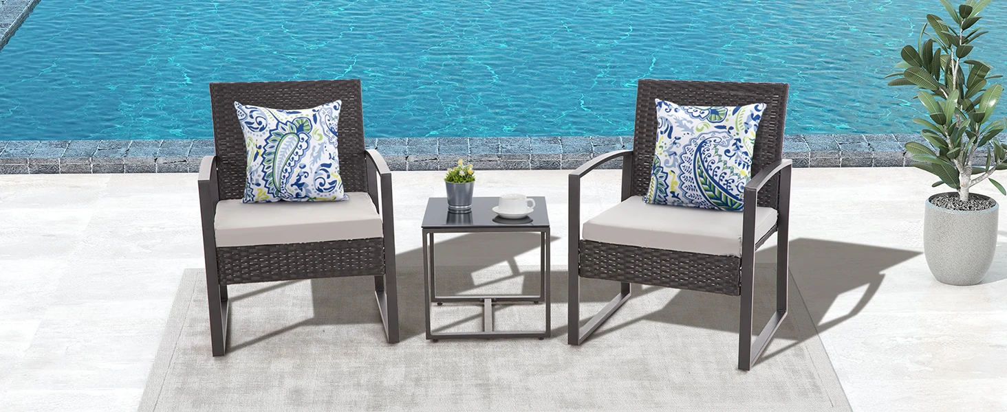 MODERN & ERGONOMIC DESIGN: Our 3PCS Patio Furniture Set features a sleek and stylish design that adds a touch of modernity to your outdoor spaces. Its ergonomic construction ensures maximum comfort while you relax and unwind.