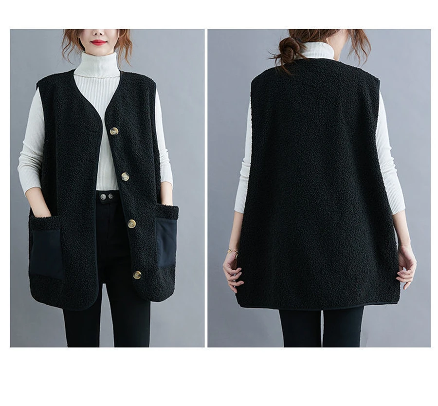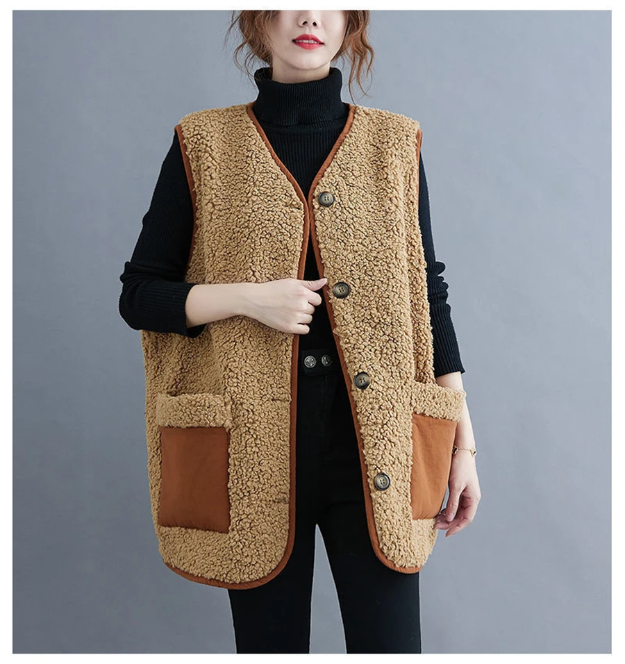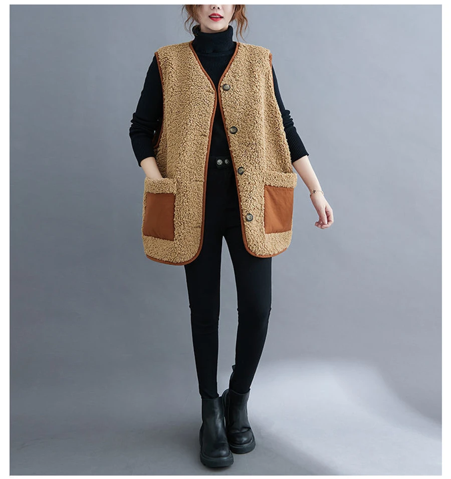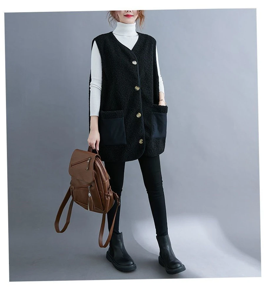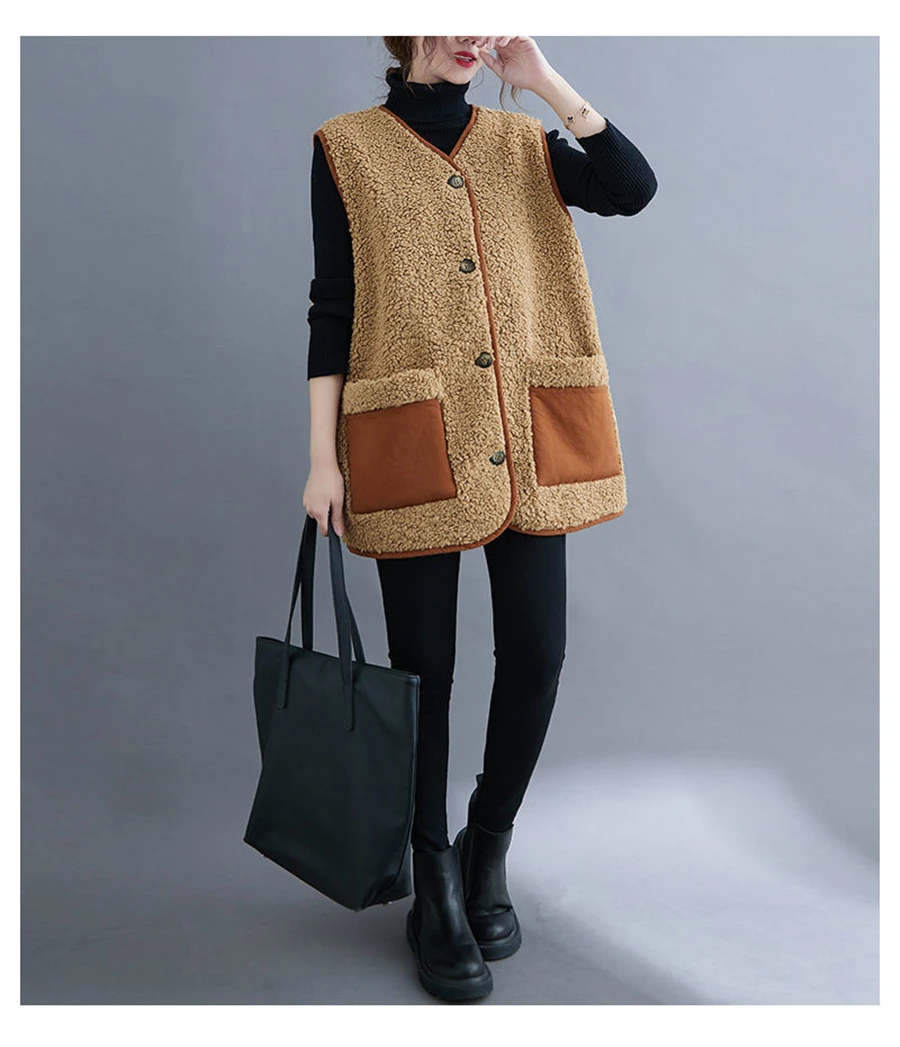 Oversize 4XL Spliced Faux Fleece Fur Vests Mid-length Women Wool Sleeveless Jacket Teddy Coat Casual Loose Gilet Korean Chalecos