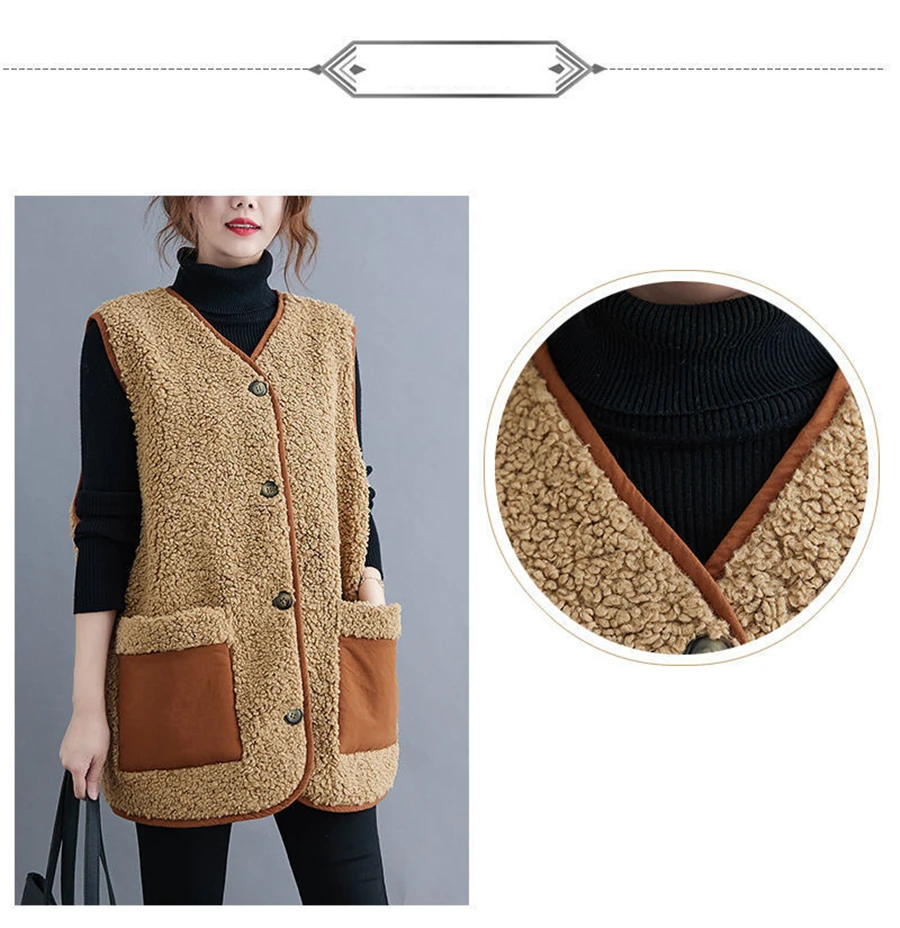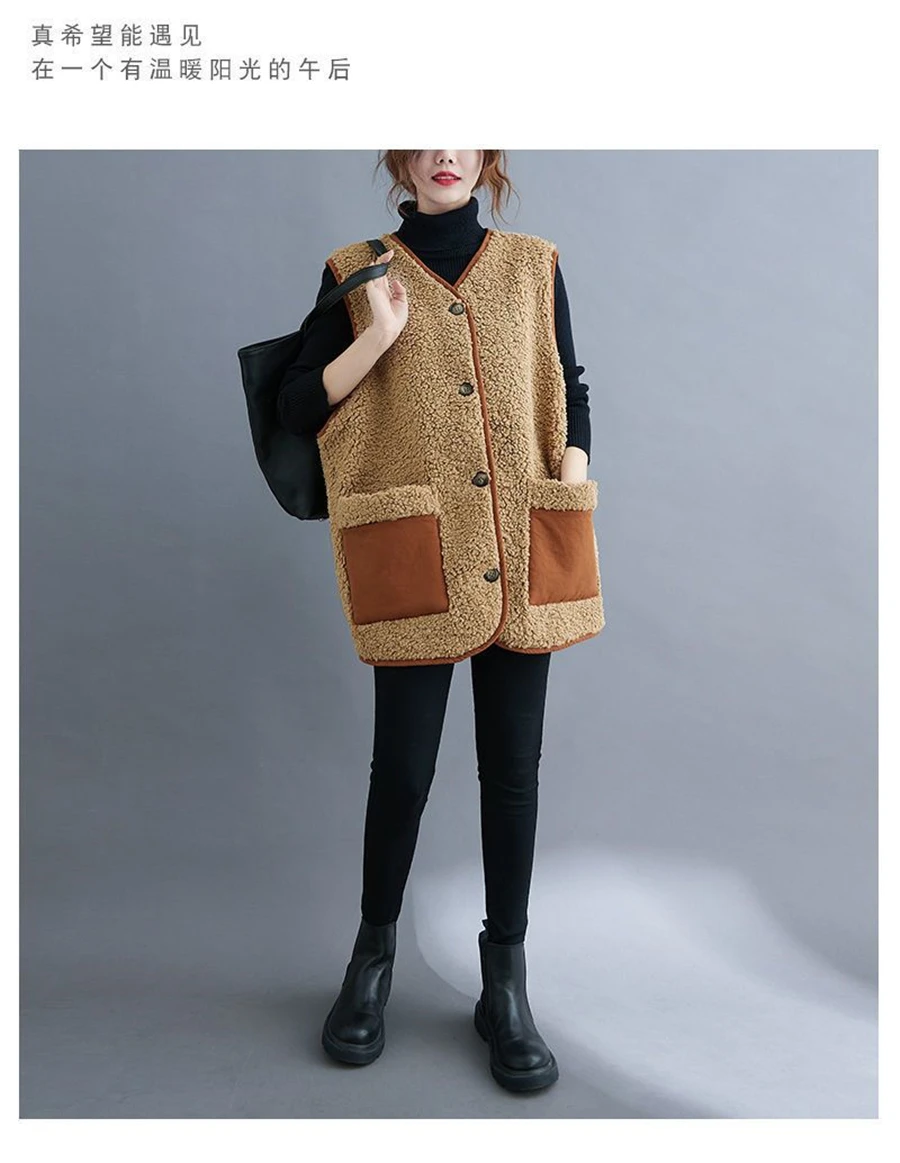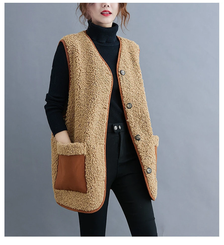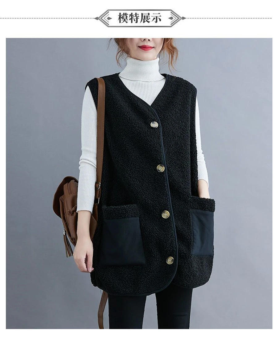 Oversize 4XL Spliced Faux Fleece Fur Vests Mid-length Women Wool Sleeveless Jacket Teddy Coat Casual Loose Gilet Korean Chalecos