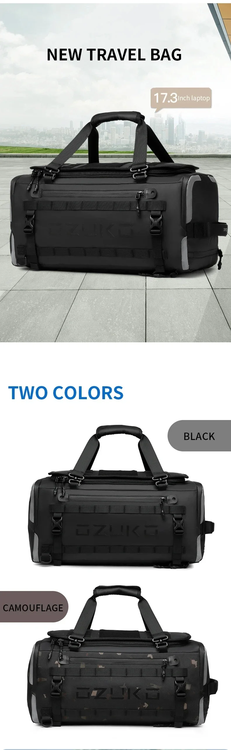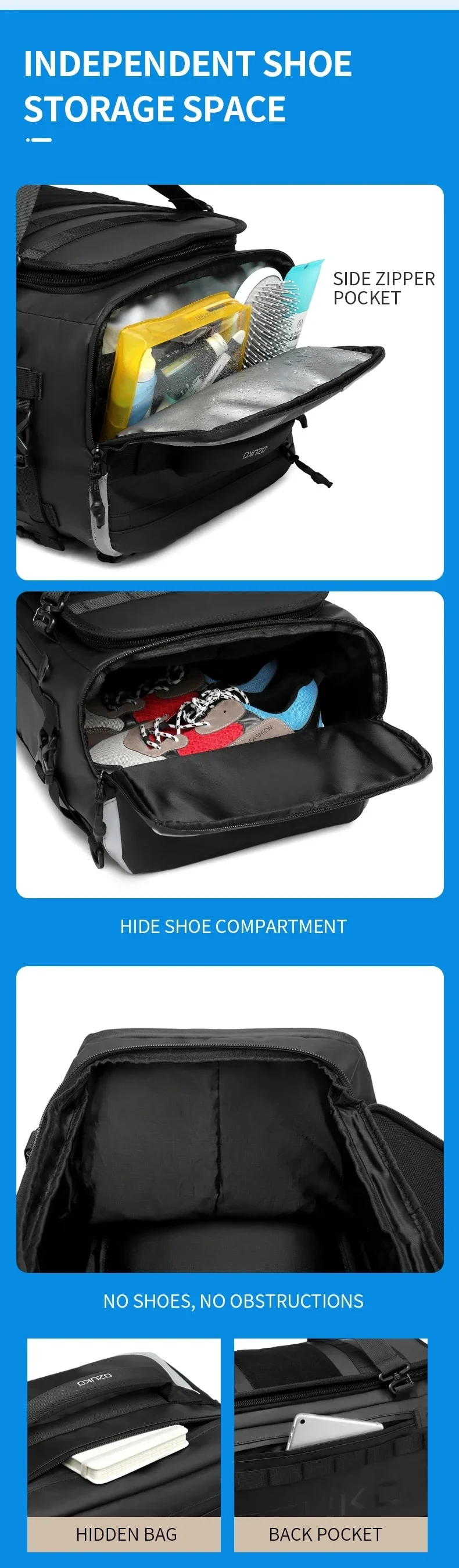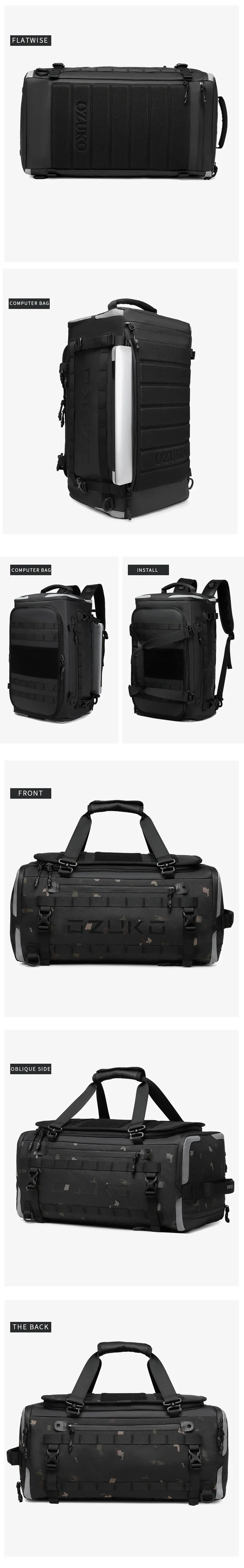 Ozuko suitcase organizer Men’s Sports Fitness Dry and Wet Separation Travel Bag Short Business Trip Weekend Camping Backpack