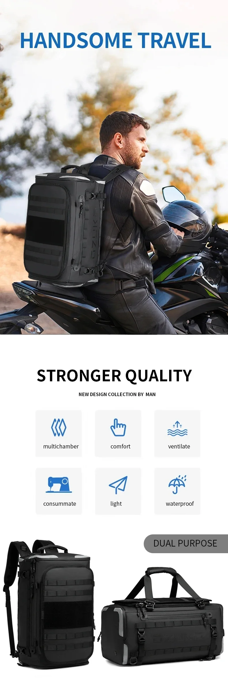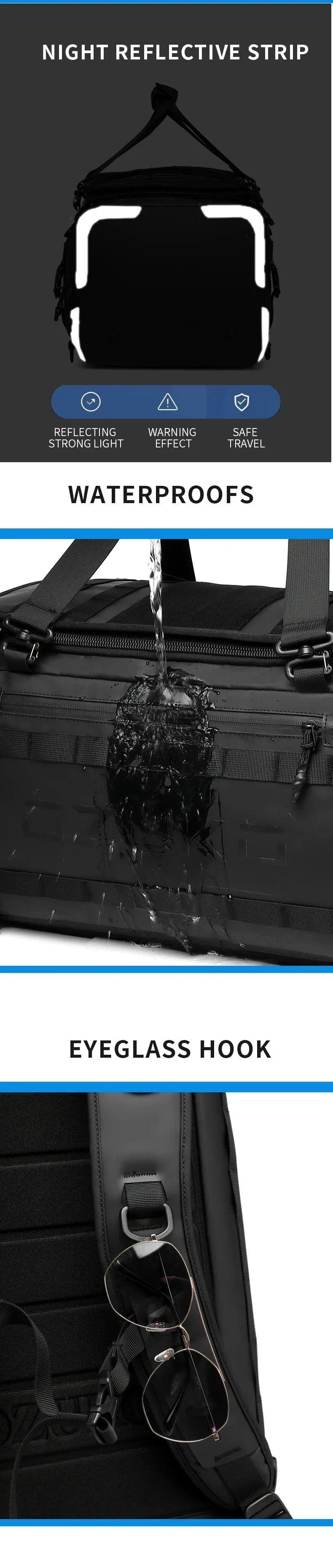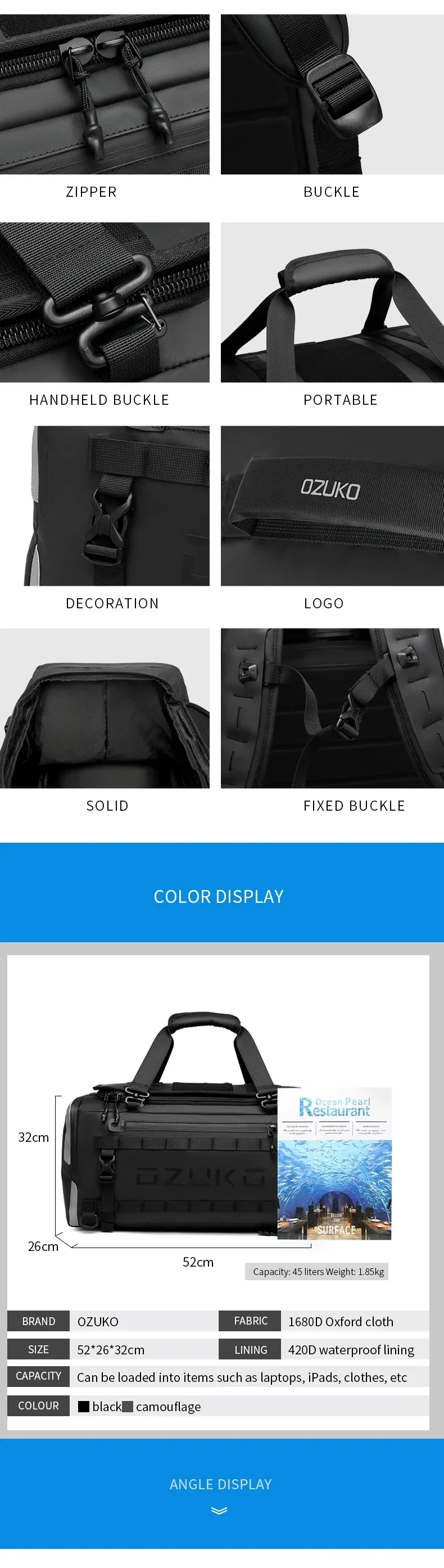 Ozuko suitcase organizer Men’s Sports Fitness Dry and Wet Separation Travel Bag Short Business Trip Weekend Camping Backpack