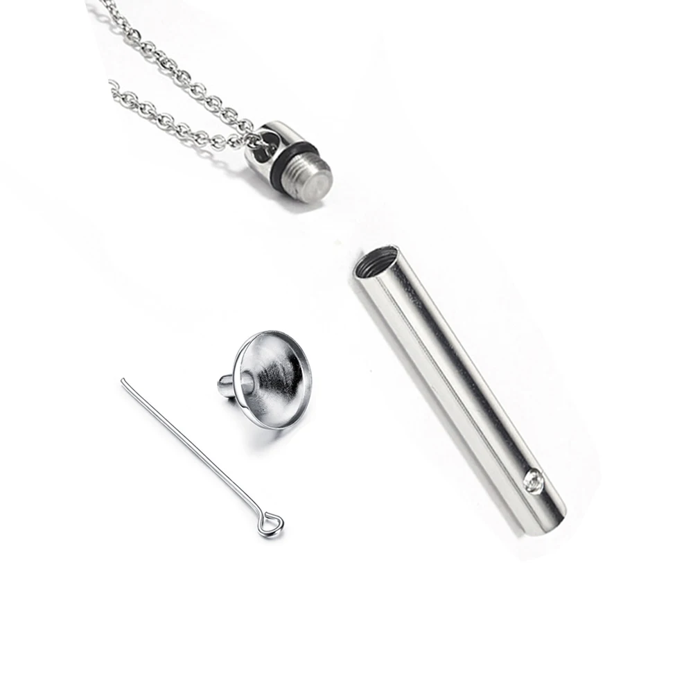 Pack of 3/4/5/10 -Unisex Customize Memorial Keepsake Stainless Steel Cylinder Cremation Ashes Necklace- with funnel filling tool
