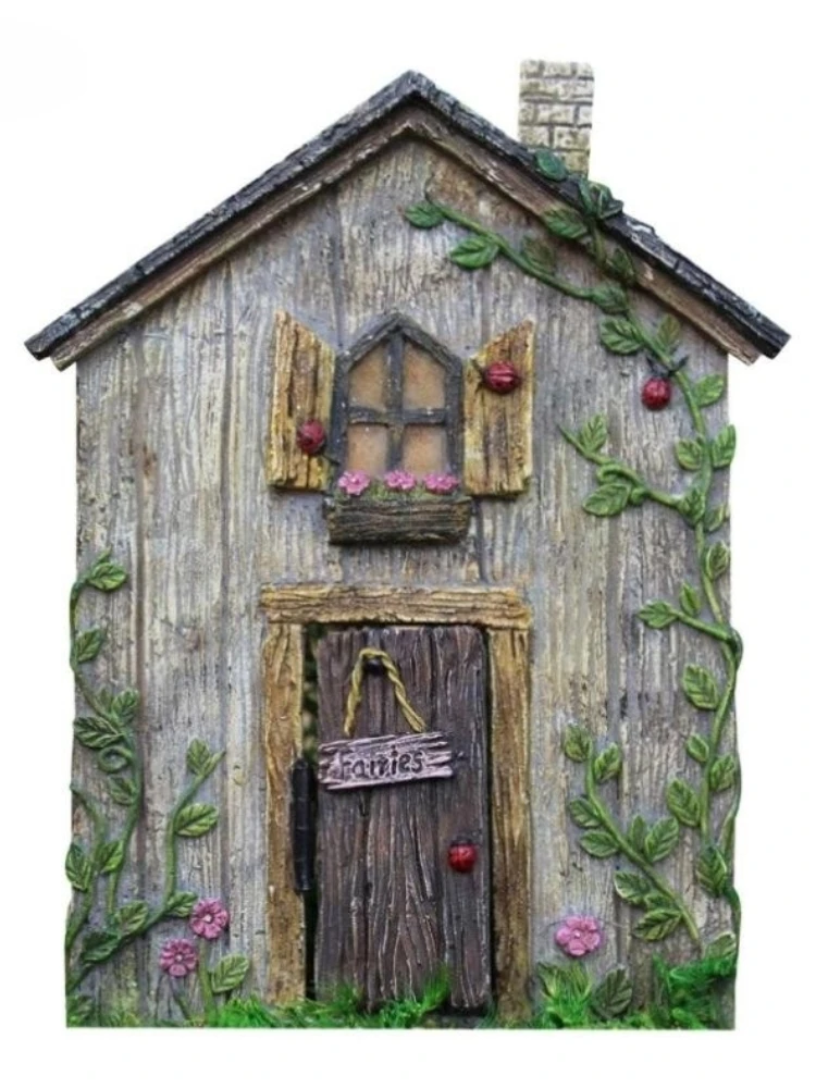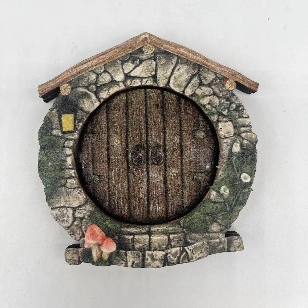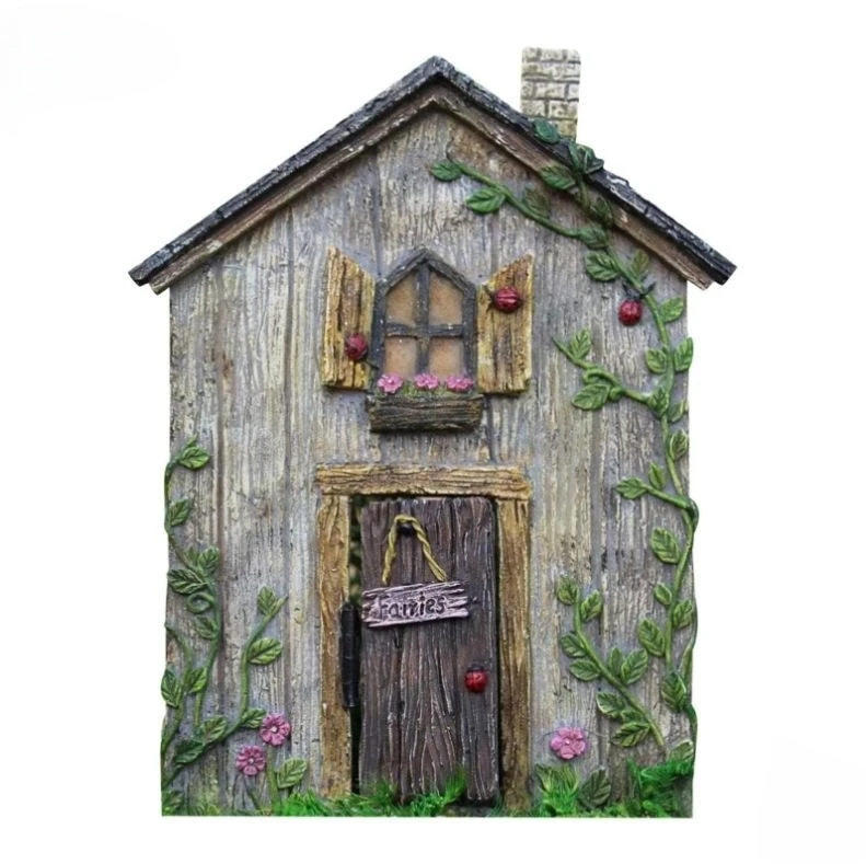 Pastoral Wooden Fairys Dwarf Tree Door Window Statue Fairytales Decoration Creative Cute mini House Doors Garden Ornaments