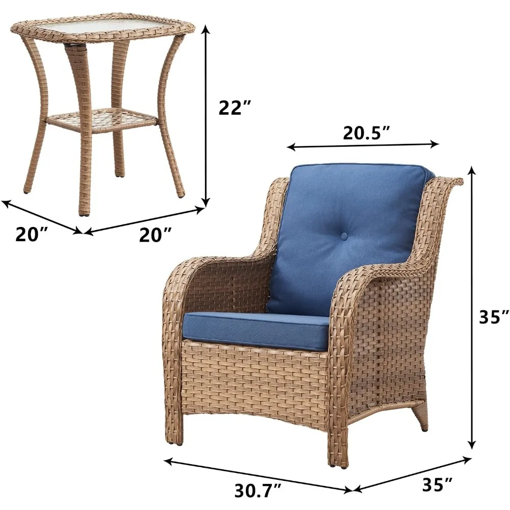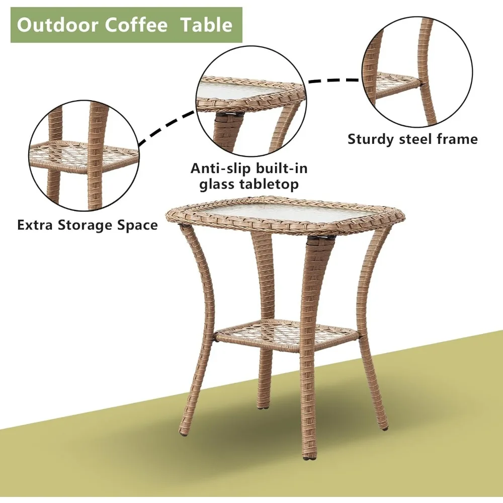- 【High Quality】This outdoor chairs and side table are constructed with hand woven with weather-resistant PE rattan & powder-coated steel frame to make them sturdy and durable.The wicker chair can holds up to 350 lbs weight capacity. Side table holds up to 55 lbs weight capacity.