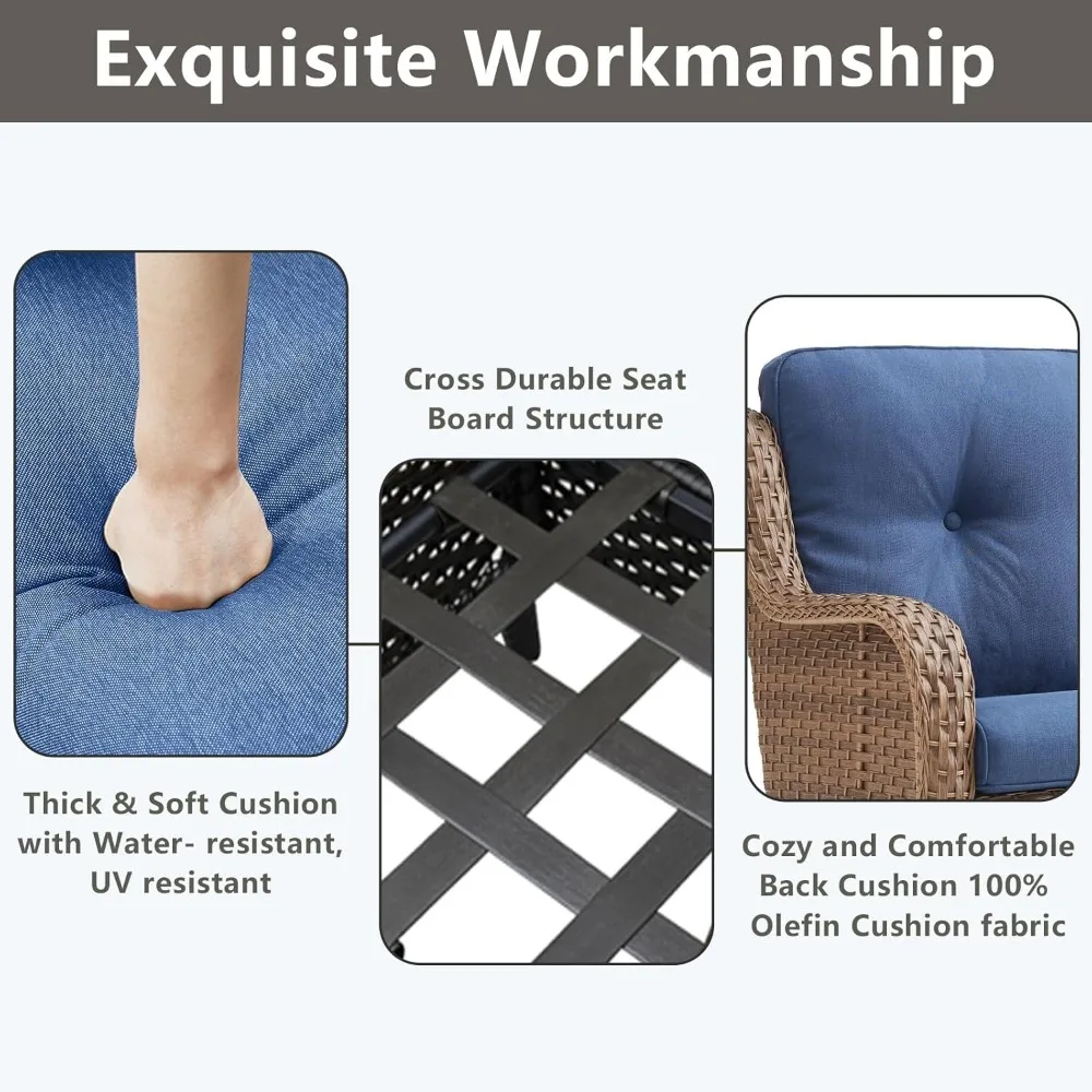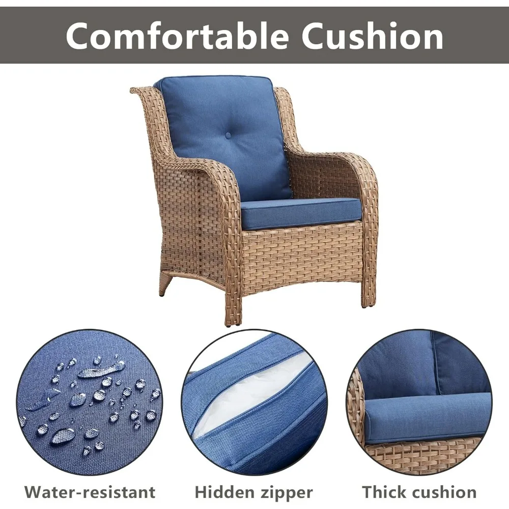 - 【Deep Seating & Comfort Cushions】This wicker chairs feature deep and wide seats with 4-inch thick sponge-padded cushions create the ultimate patio seating experience.