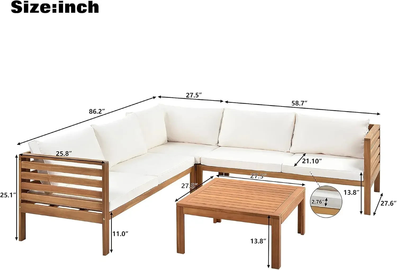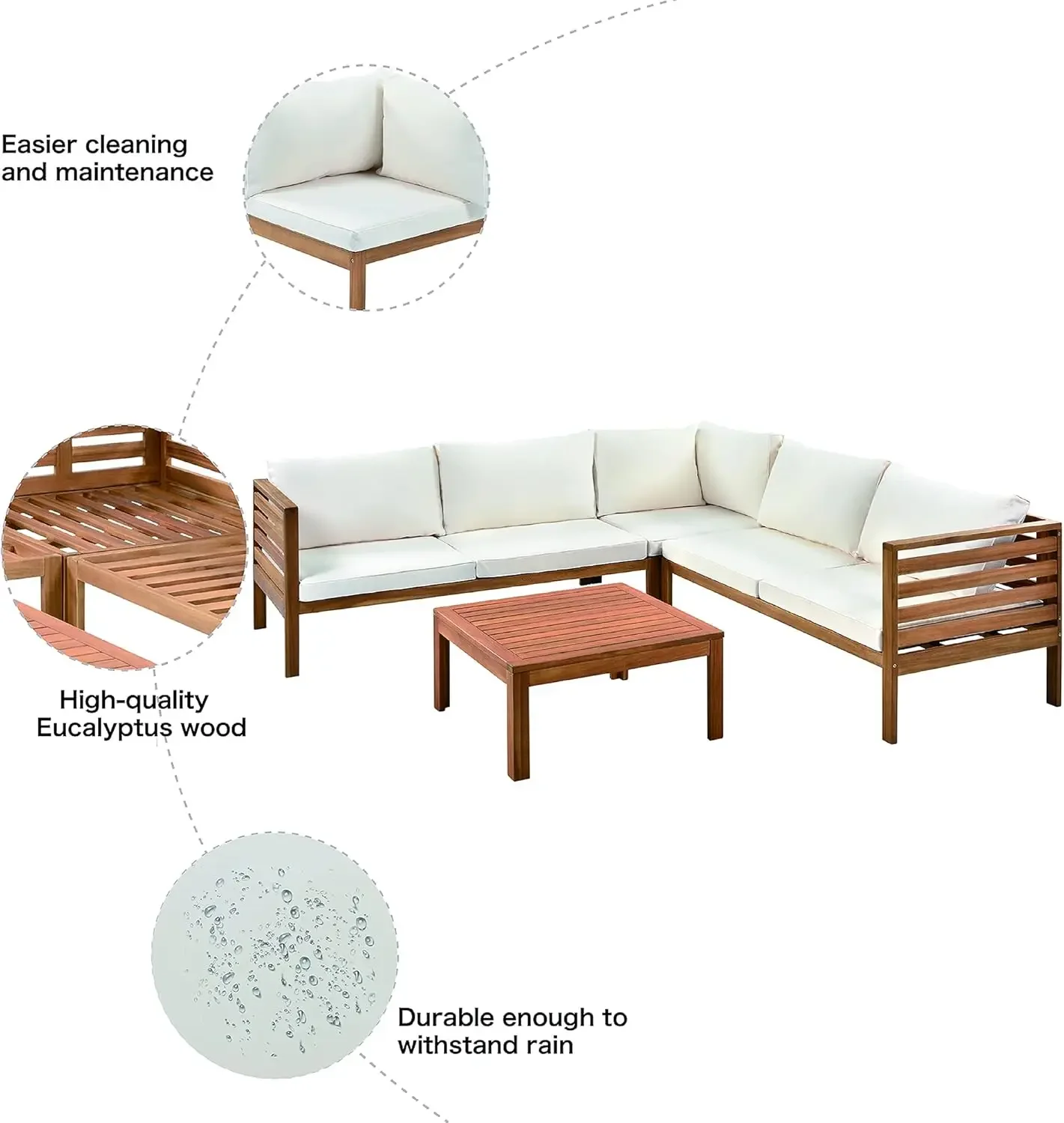 Patio Furniture 4 PC Conversation Sets,Acacia Wood Outdoor Sectional Furniture Conversation Set with Cushions,Coffee Table.Beige