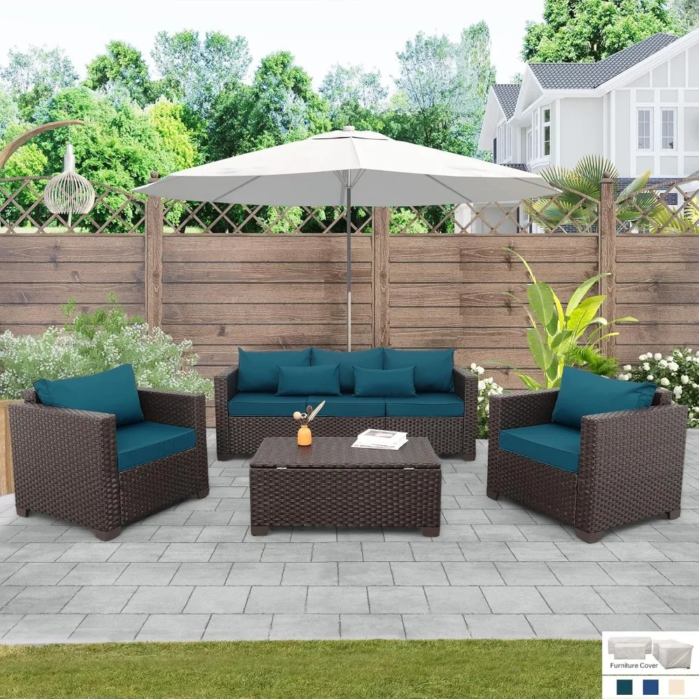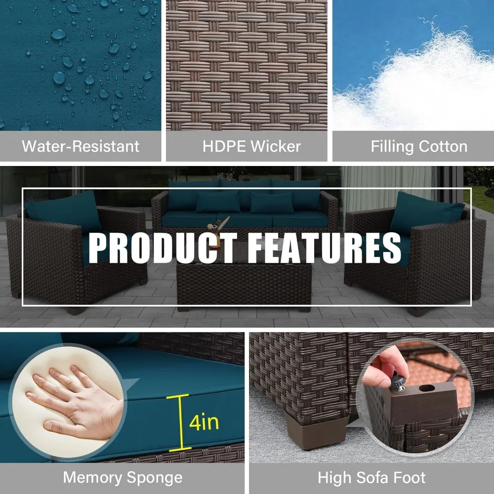 Patio Furniture Set 4 Pieces Outdoor Furniture Sets Patio Couch Outdoor Chairs Coffee Table with Storage Peacock Blue No-Slip