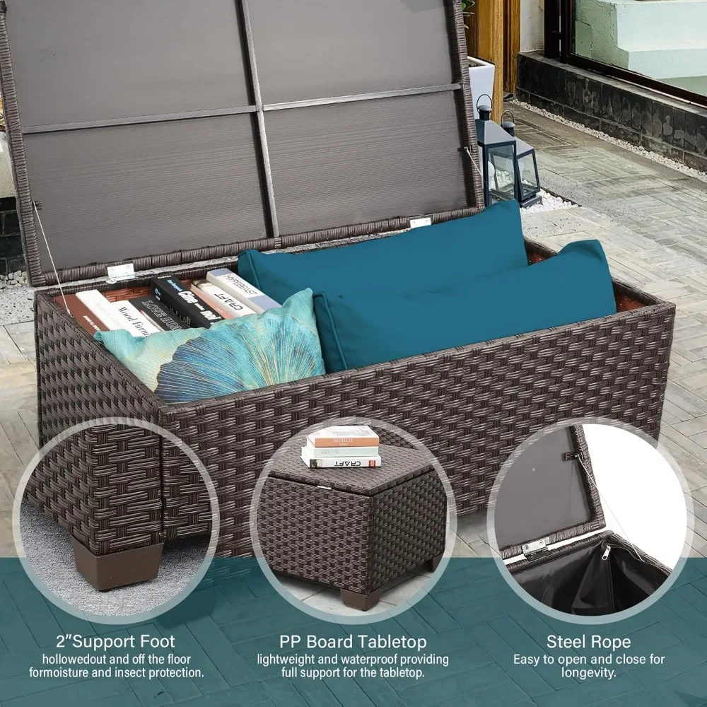- Adaptable: Outdoor patio furniture includes patio chairs, outdoor couch, and storage coffee table; styles coverage are diverse and unique. Depending on needs and better space utilization, various layouts and combinations are suitable for any decorative fashion and scene, indoors or outdoors. The table with storage allows storing multiple items for easy access anytime, is superbly convenient, and greatly enriches your outdoor life