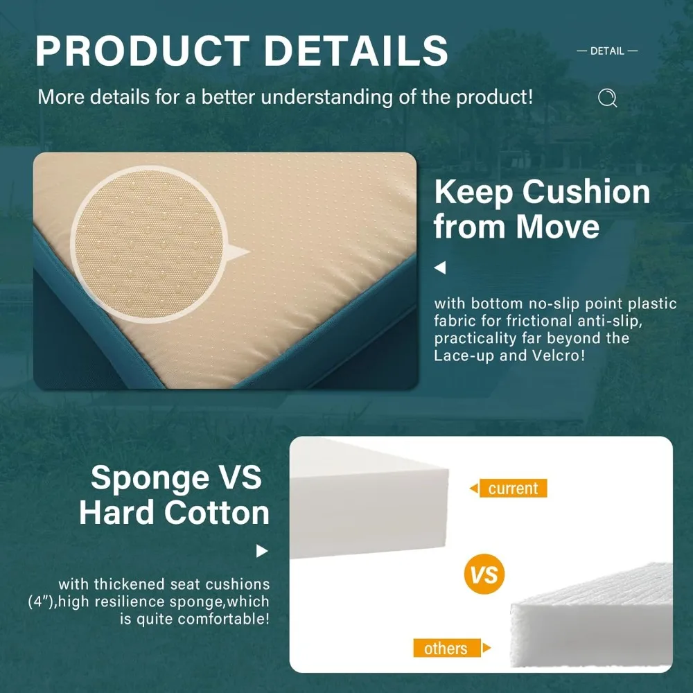 - Comfortable and No-slip: Seat cushions(4 inches) with high resilience sponge and bottom anti-slip dotted plastic fabric, anti-slip, and practicality are wholly better than lacing, velcro, and hook, matching up filling back cushions, which is extraordinarily comfortable and everlasting with outdoor sectional sofa. Free lumbar pillows style randomly