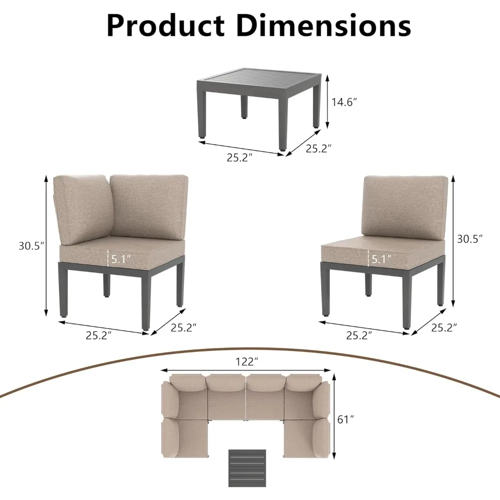 - 【Versatile Arrangement】: This outdoor sectional furniture allows for multiple configurations, giving you the freedom to create the perfect setup for your space. Whether you prefer a cozy corner or an expansive seating arrangement, this patio sectional fits your needs