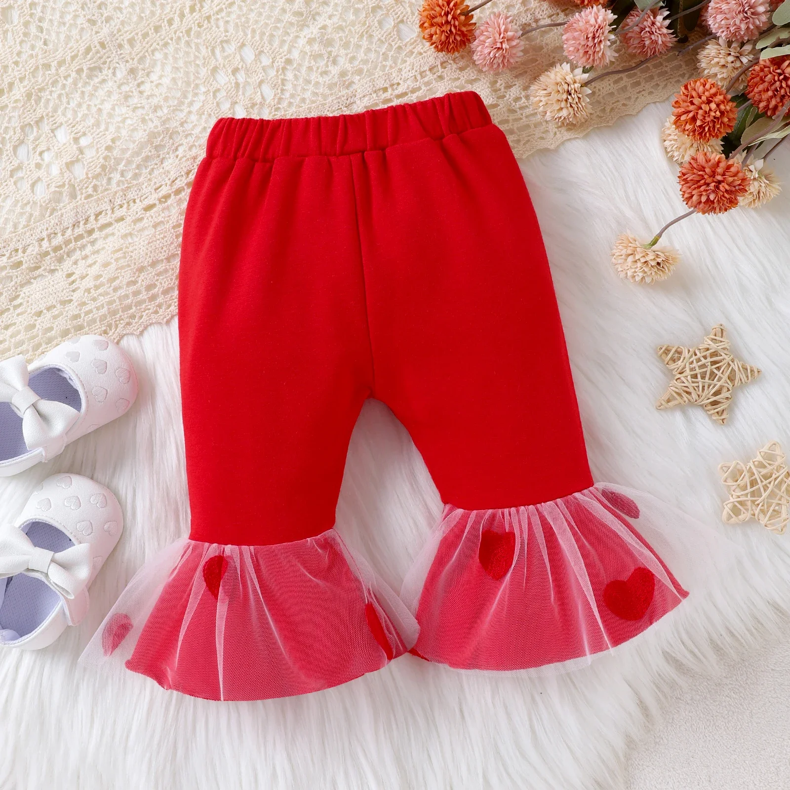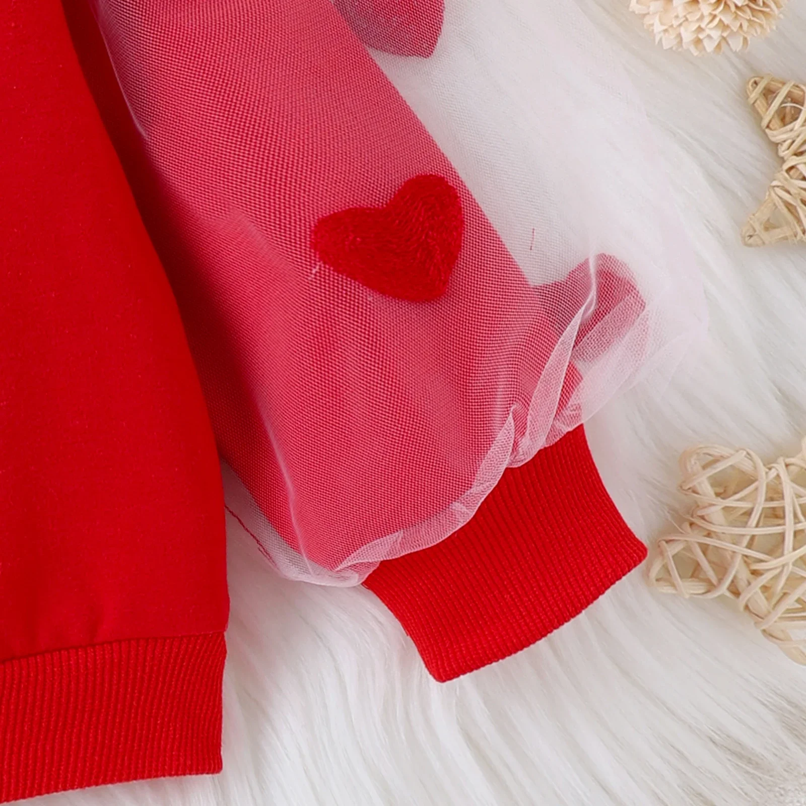 Product Introduction: Sweet and stylish baby 2-piece set with an adorable heart-shaped mesh design, perfect for everyday outings in the autumn season. Fabric: Made of 80% cotton and 20% polyester, with moderate fabric characteristics. Care Instruction: Machine wash in cold water, do not bleach, tumble dry low, low iron, do not dry clean. Key Features: * Product features: Heart-shaped mesh design.