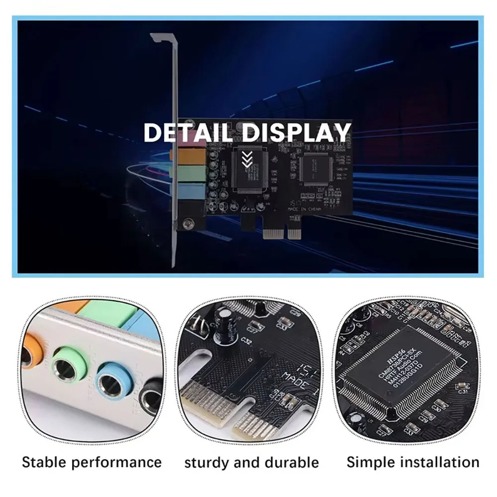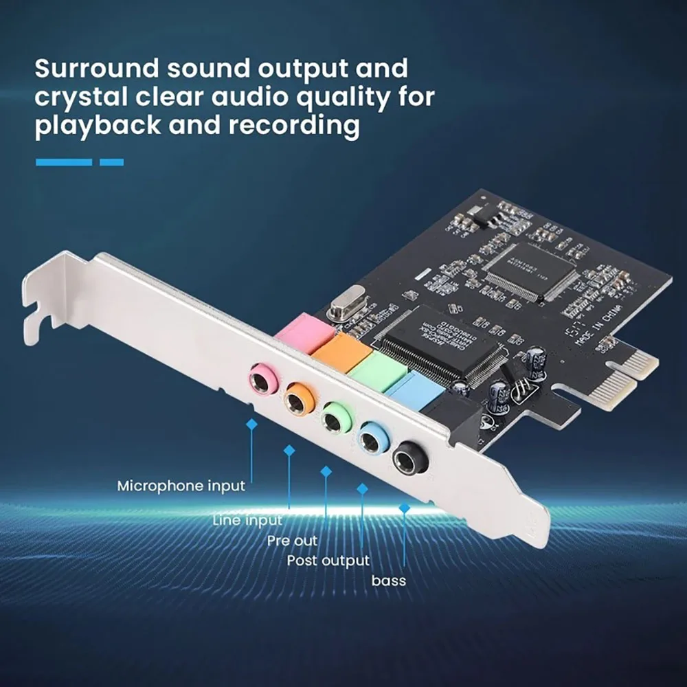 Pcie Sound Card 5.1 PCI Express Sound Effect Surround Card 3D Stereo Audio High Sound Performance PC Sound Card CMI8738 Chip