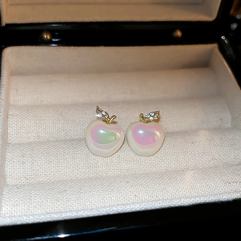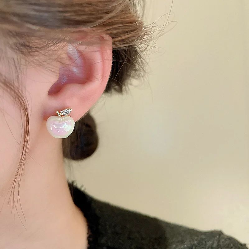 Pearl Apple Earrings for Women Inlaid Rhinestone Simple Studs cute charms Stud Earrings Wholesale party holiday Jewelry female