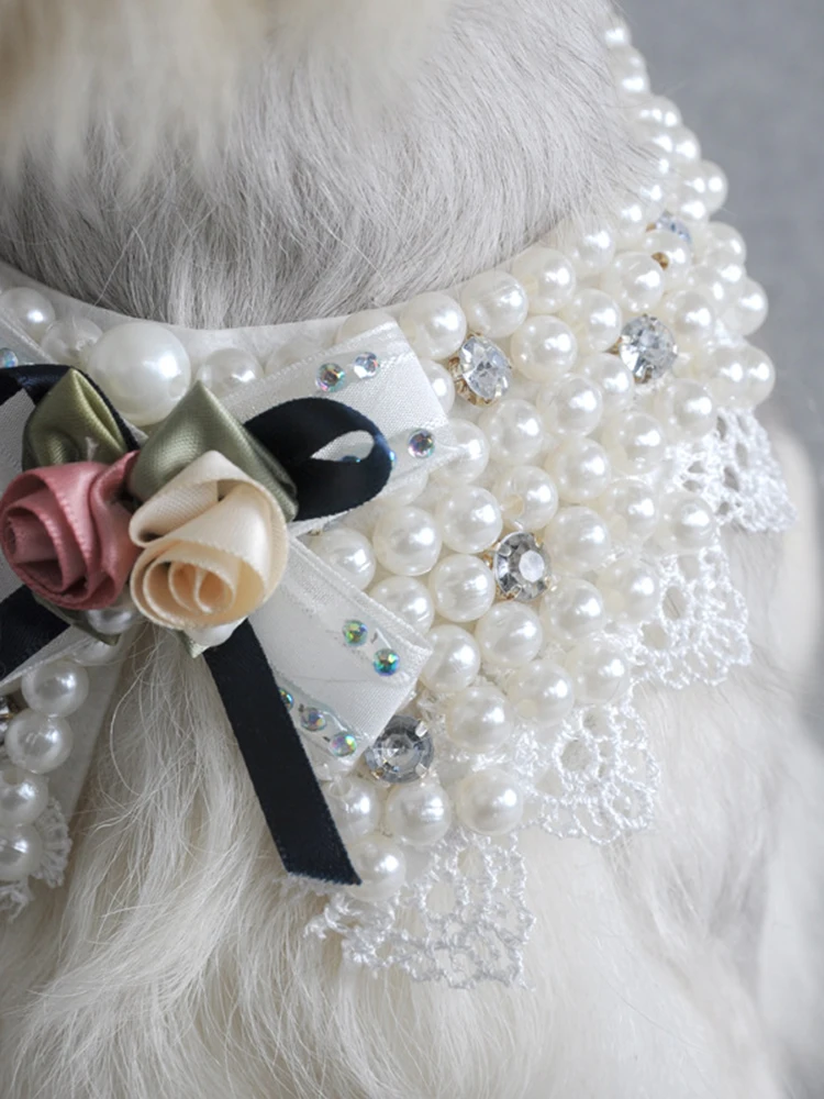 Pearl Jewelry Fake collar for Dogs Wool Jacket Clothes Winter Pet Woolen Coat Cat Wadded Bandana Puppy Apparel Yorkie Outfit Pug
