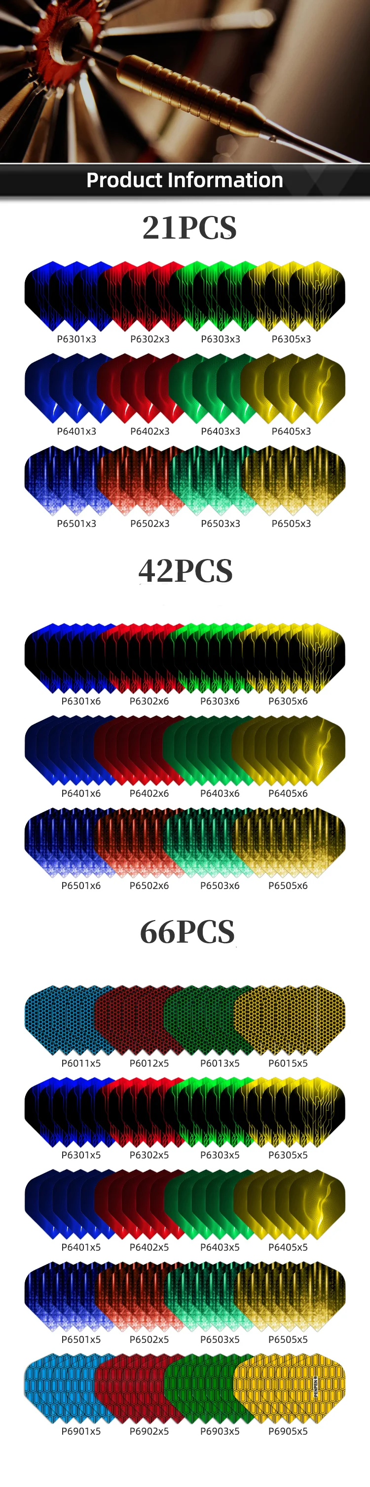 PENPEN 66/42/21PCS Multiple Styles Colorful Standard Dart Flights thickening Darts Flight