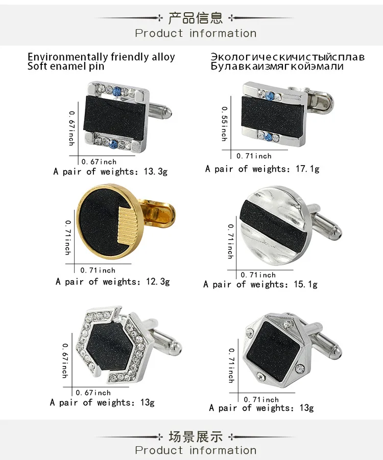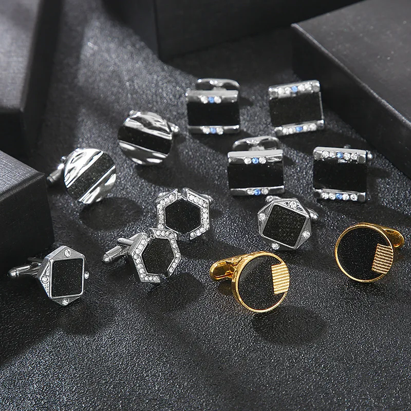 Personality Business French Shirt Cuff Buttons Men’s Fashion Geometric Square Crystal Cufflinks 2022 New Gifts to a Luxury Man