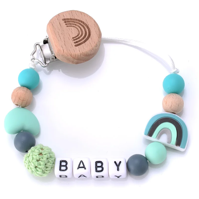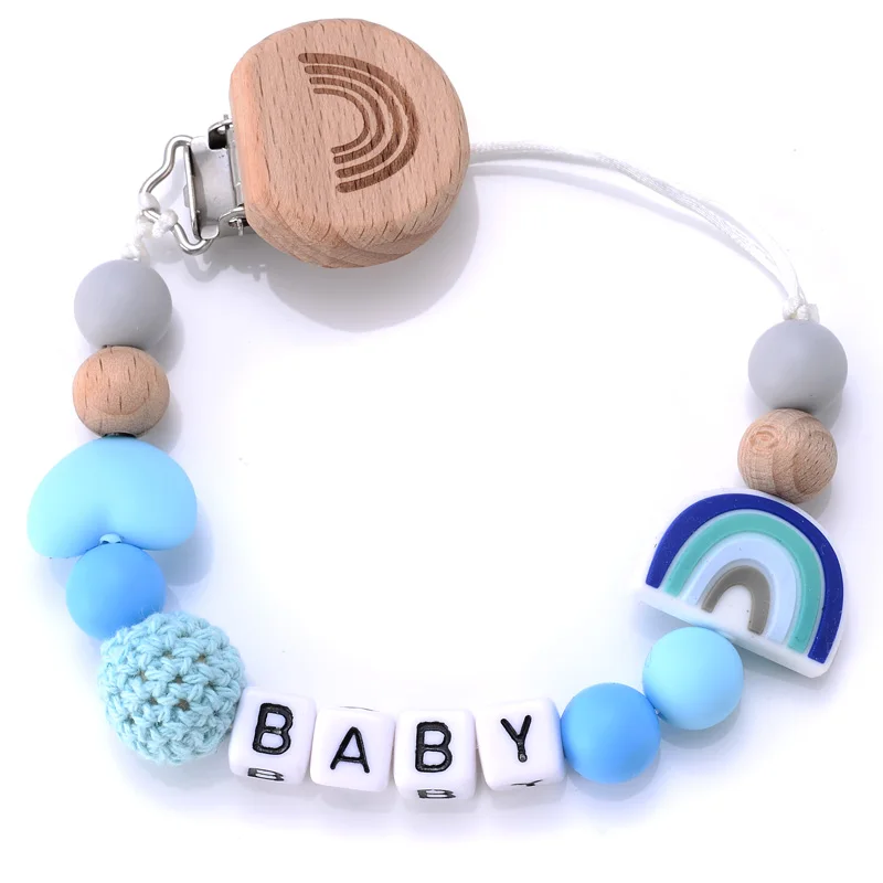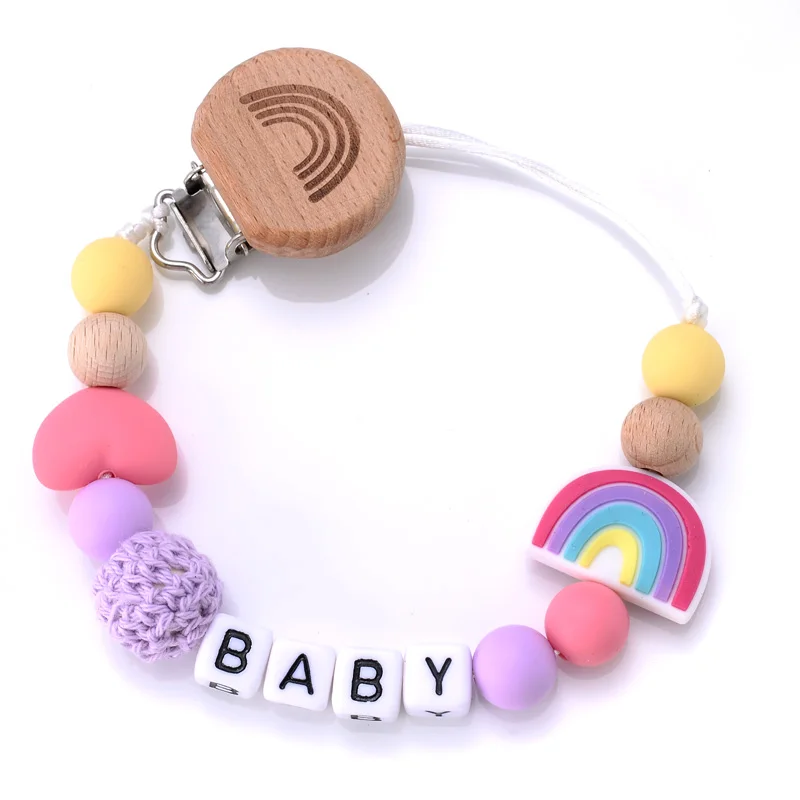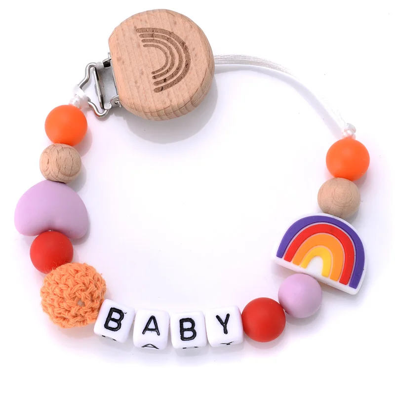 Personalize Name Pacifier Clips Holder Baby Silicone Rainbow Pacifier Holder Chain Baby Handmade Dummy Clips Teether Gift Custom