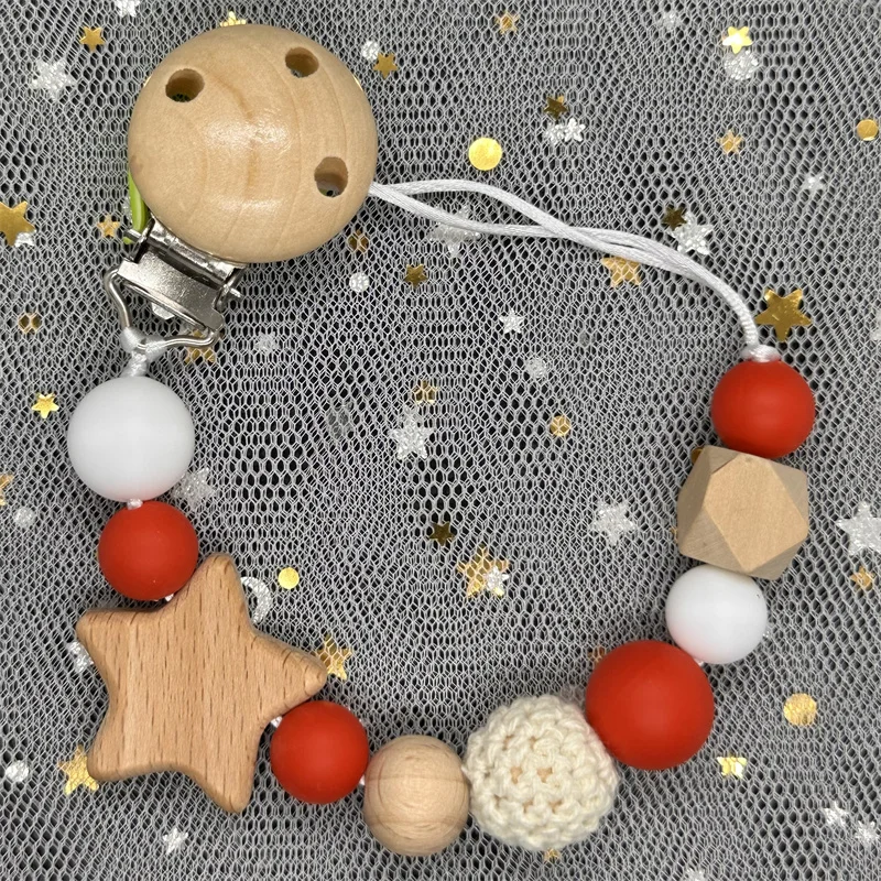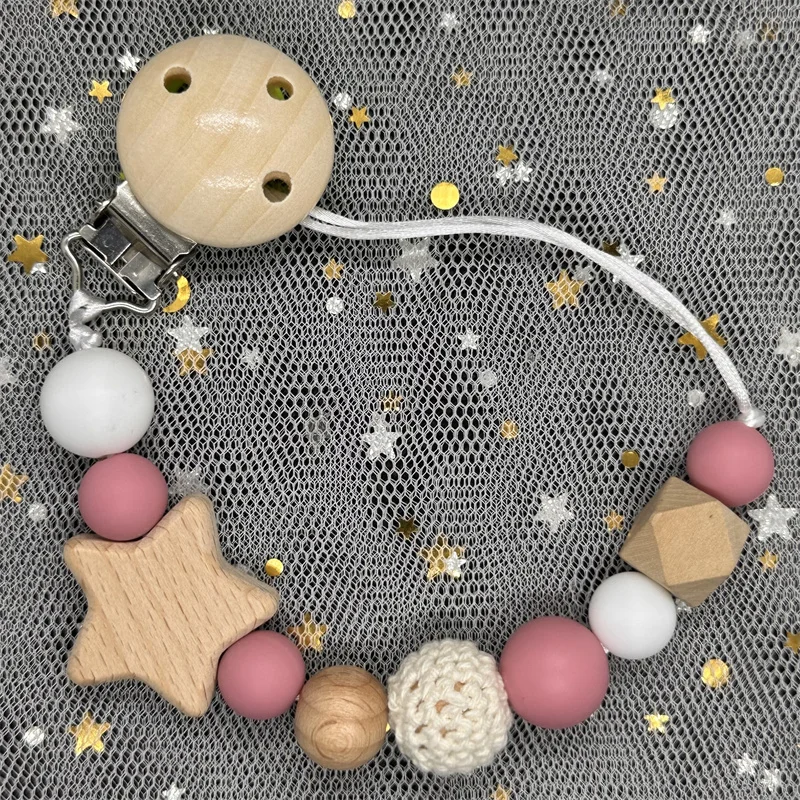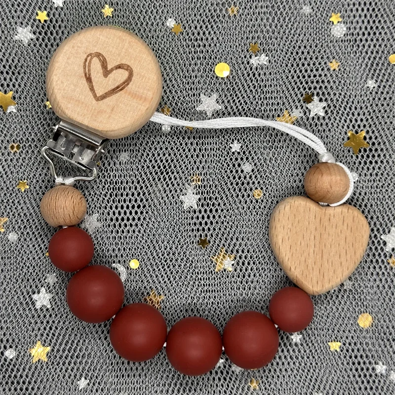 Personalized Baby Pacifier Chain Clips Wooden Custom Teether Silicone Round Beads Teething Chain for Care Soother Chew Toys Gift