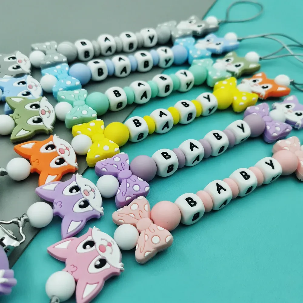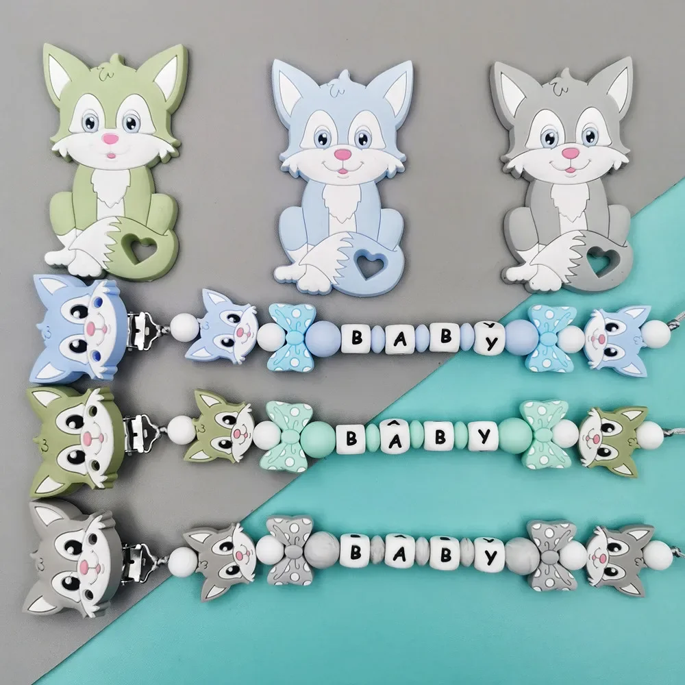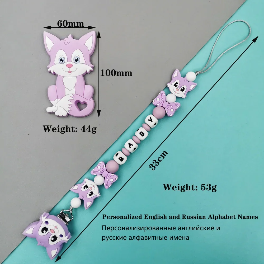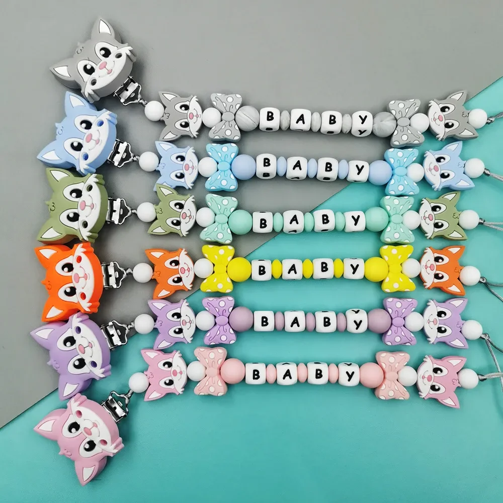 Personalized English Russian Letter Name Baby Cat Silicone Pendant Pacifier Clips Holder Chains Baby Teether Kawaii Toy Gifts