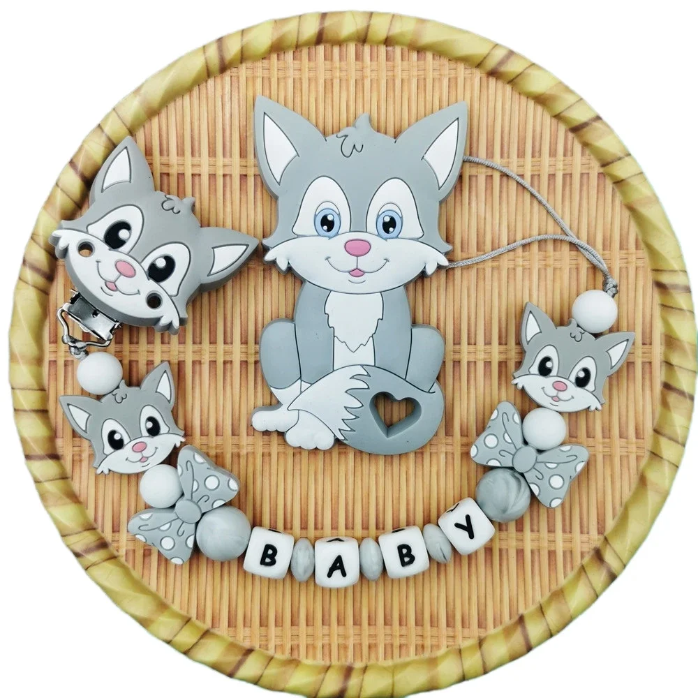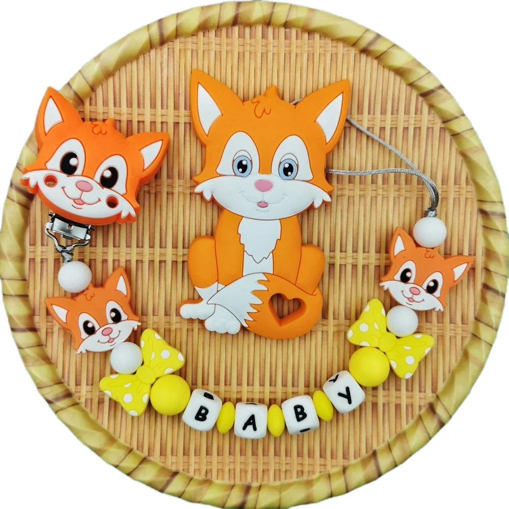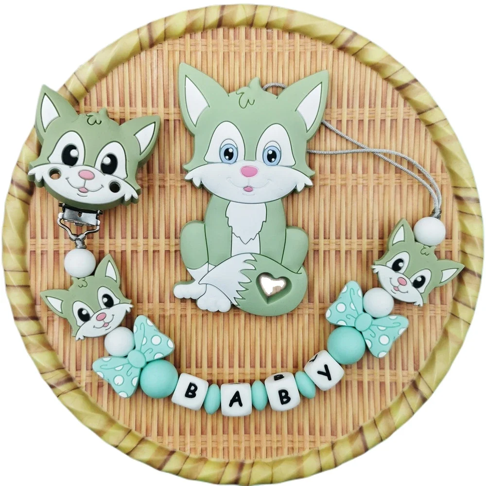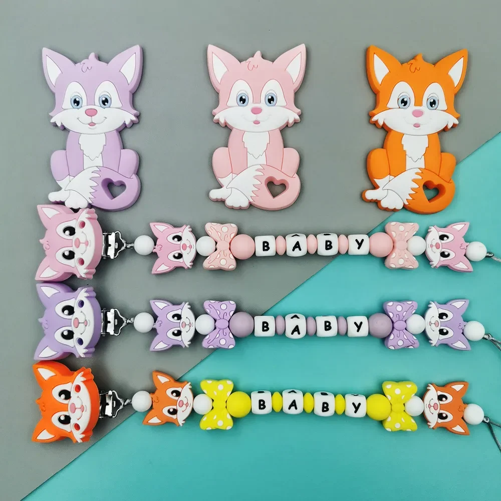 Personalized English Russian Letter Name Baby Cat Silicone Pendant Pacifier Clips Holder Chains Baby Teether Kawaii Toy Gifts