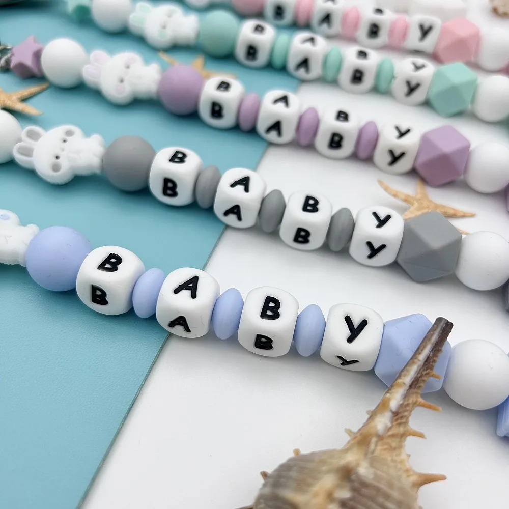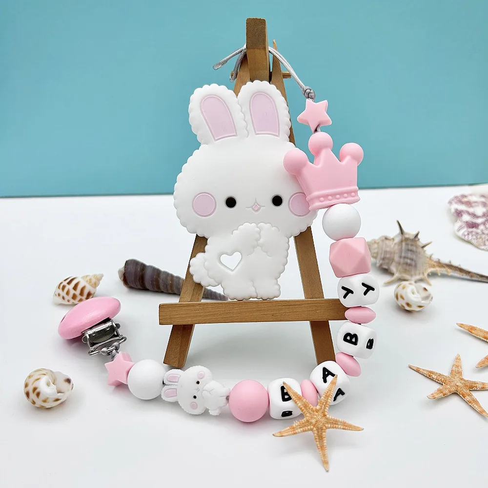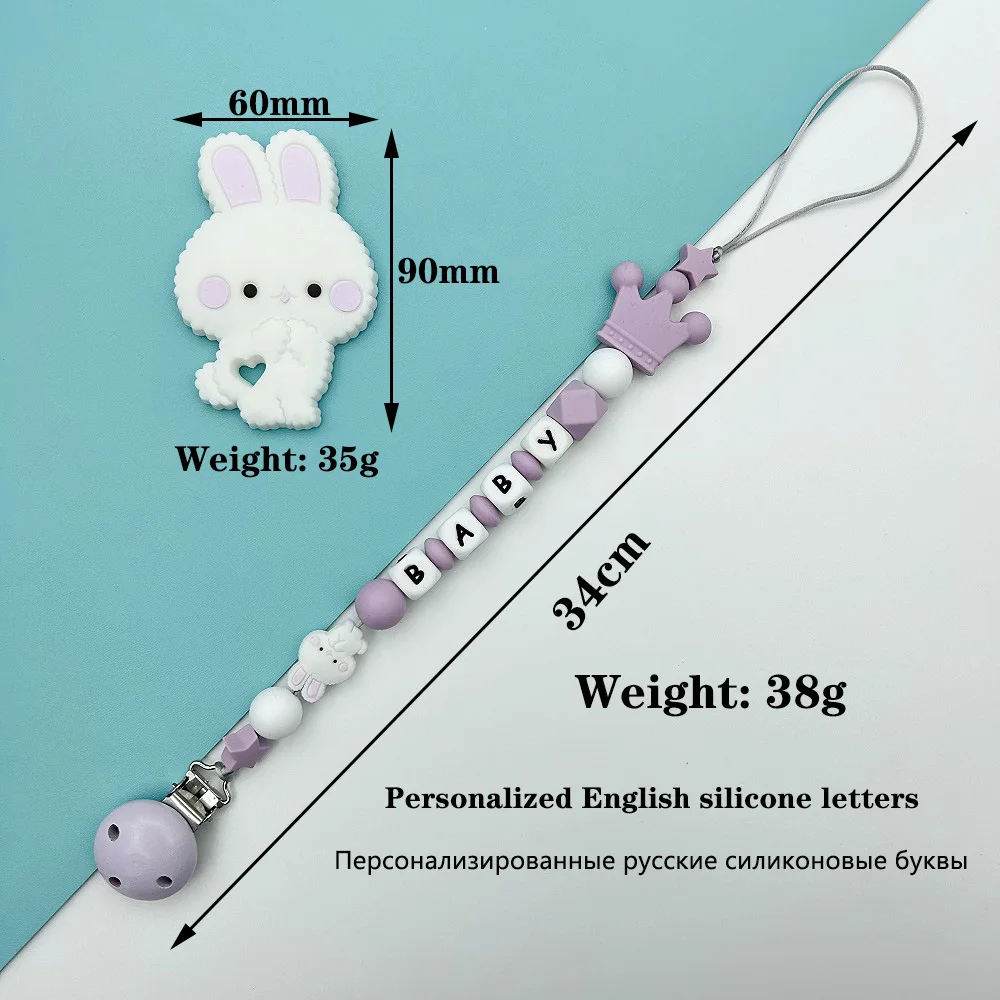 Personalized English Russian Letters Name Baby Rabbit Silicone Pendant Pacifier Clips Chains Holder Teether Baby Kawaii Toy Gift