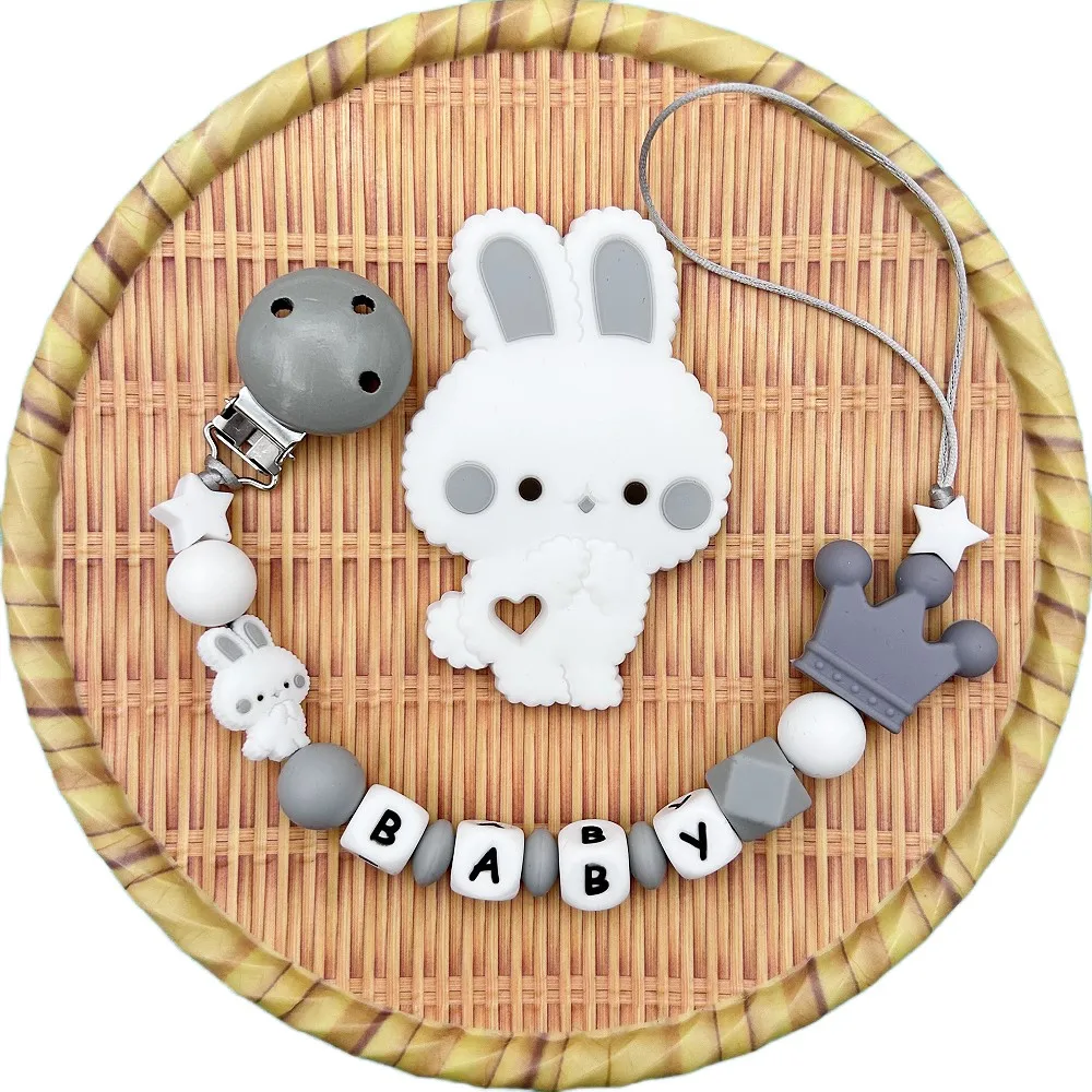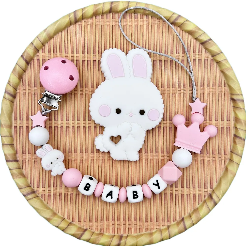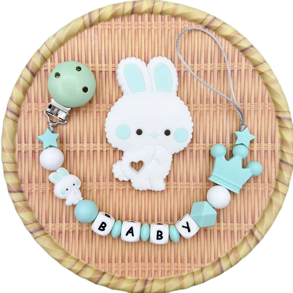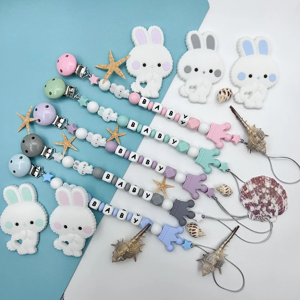 Personalized English Russian Letters Name Baby Rabbit Silicone Pendant Pacifier Clips Chains Holder Teether Baby Kawaii Toy Gift