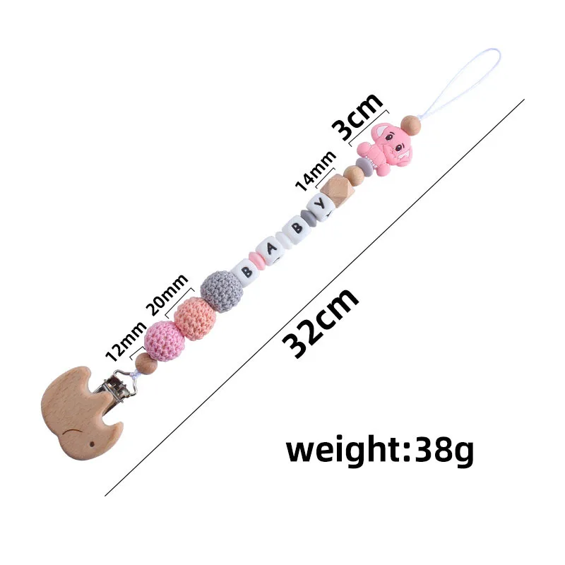 Personalized Name Baby Pacifier Clips Cartoon Teething Toys Accessories Elephant Dummy Nipples Holder Chain Newborn Chew Gifts