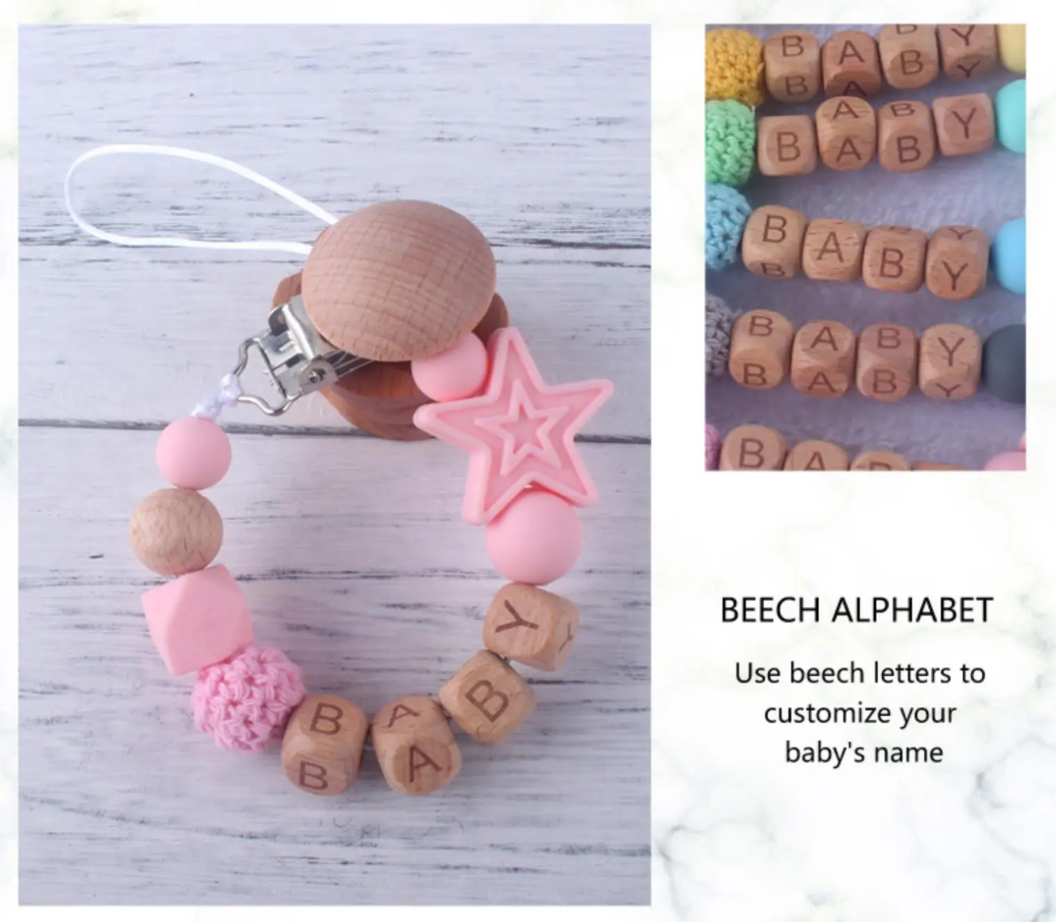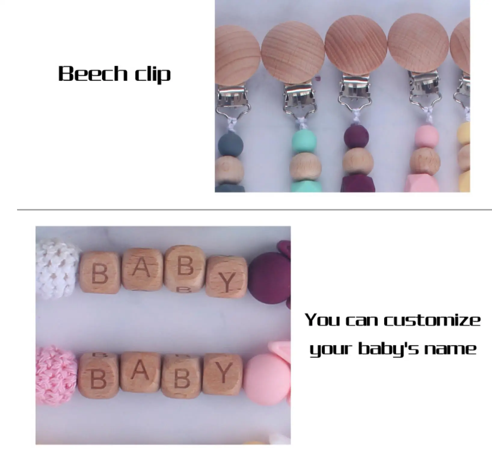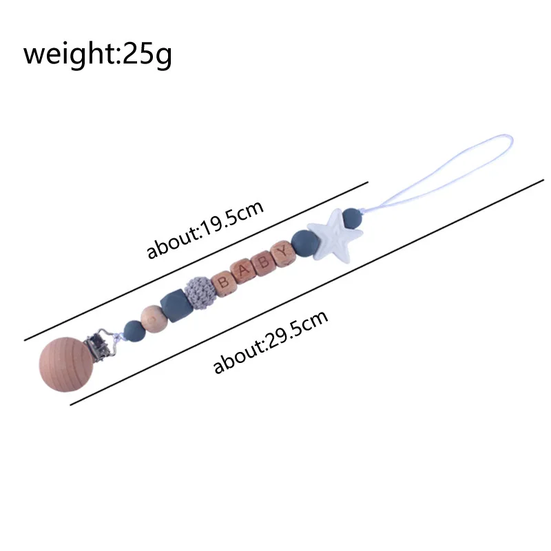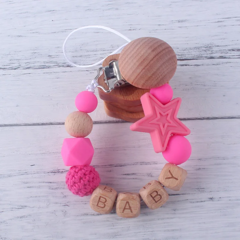 Personalized Name Beech Wood Baby Pacifier Clips Silicone Star Teether Soother Chain Infant Dummy Holder