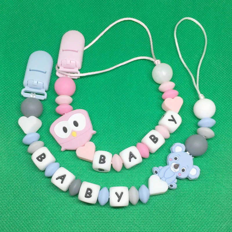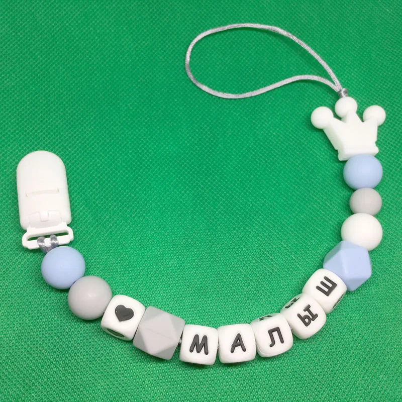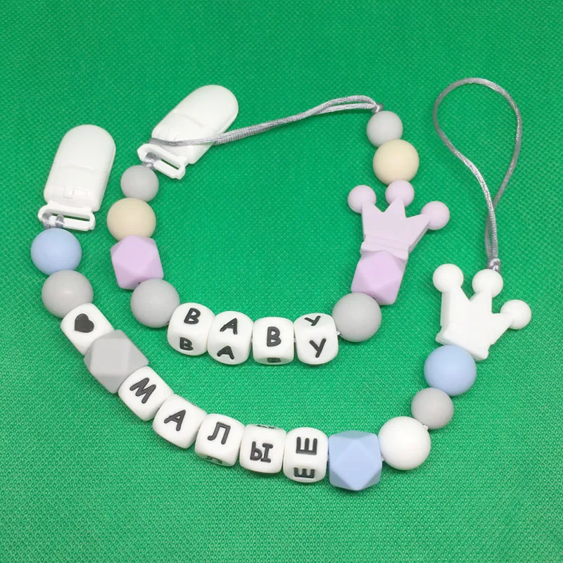 Personalized Name Silicone Baby Pacifier Clips Chain Russian English Letter Teething Beads Chewable Toys Newborn Shower Gift