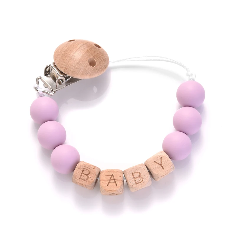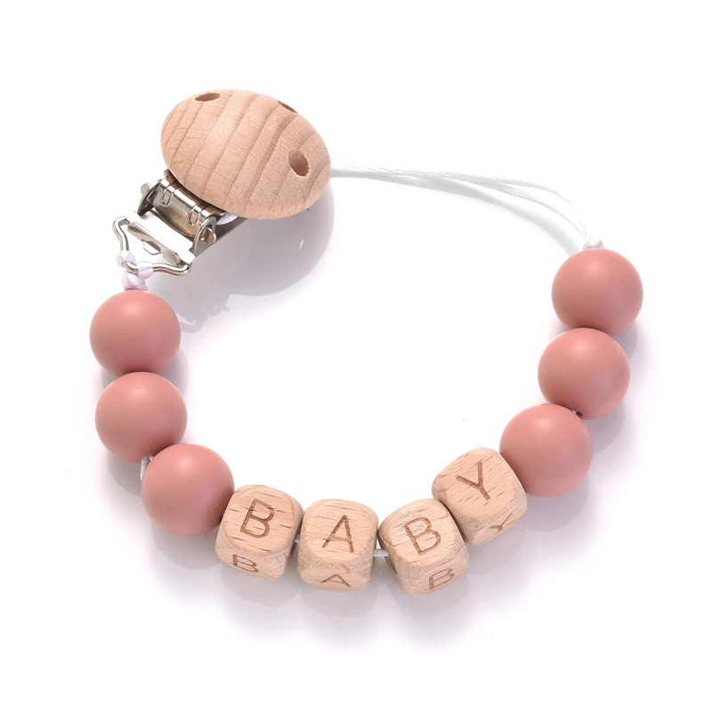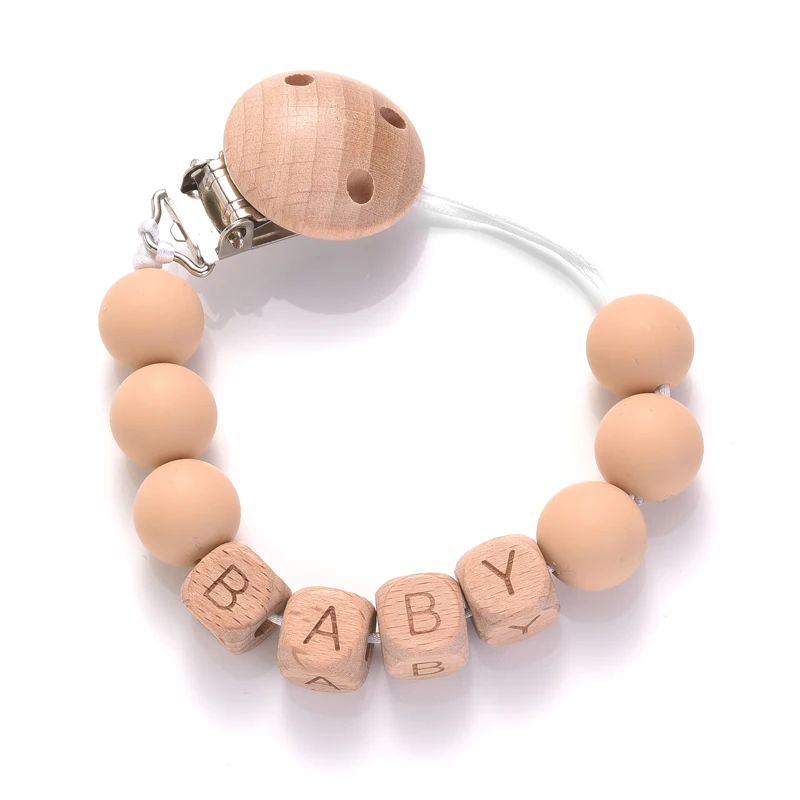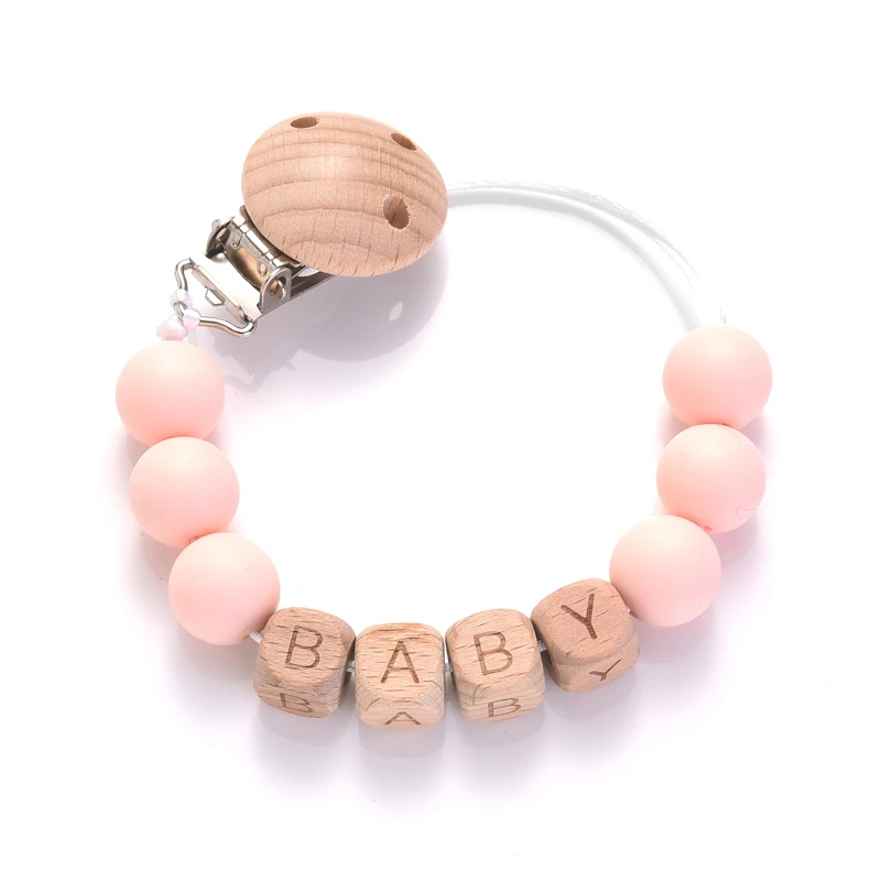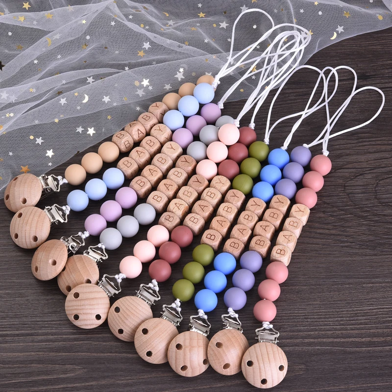 Personalized Name Wood Baby Pacifier Clip Silicone Round Beads Nipple Chain Teether Infant Dummy Holder Chain Baby Nursing Toy