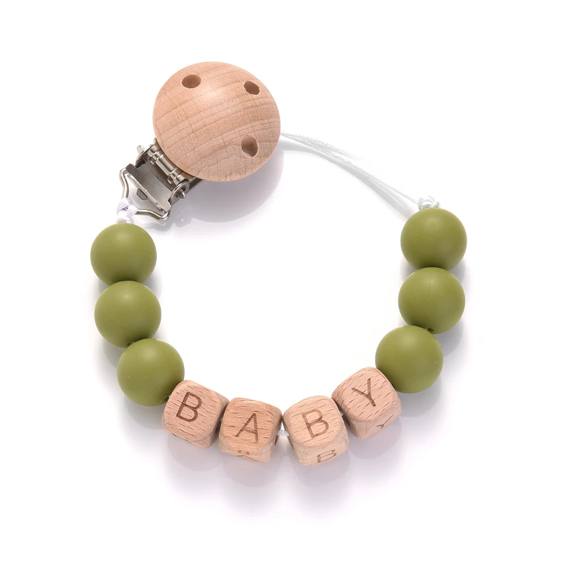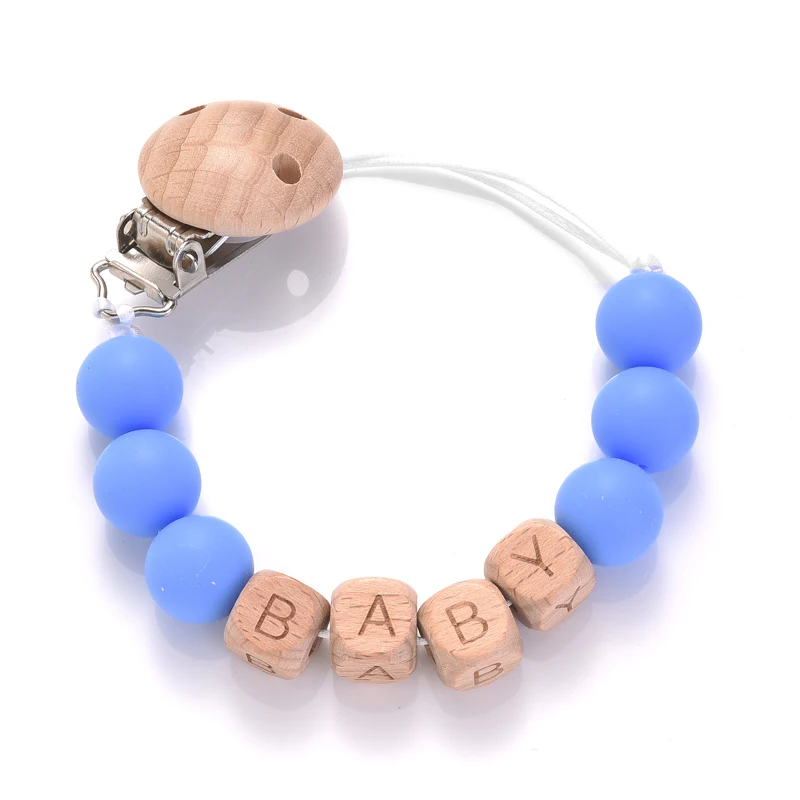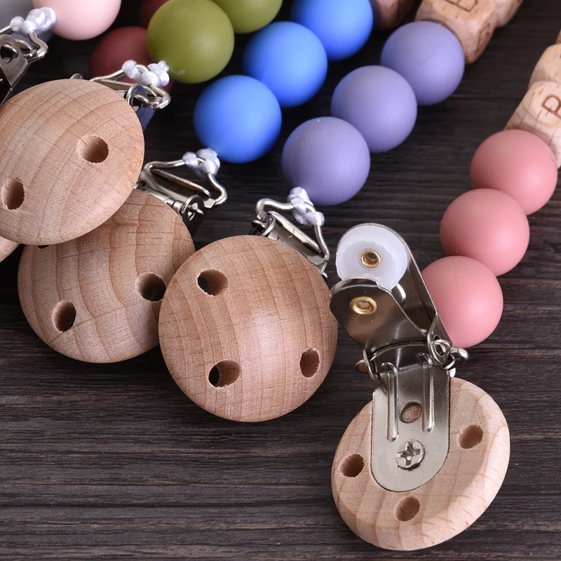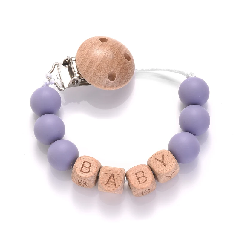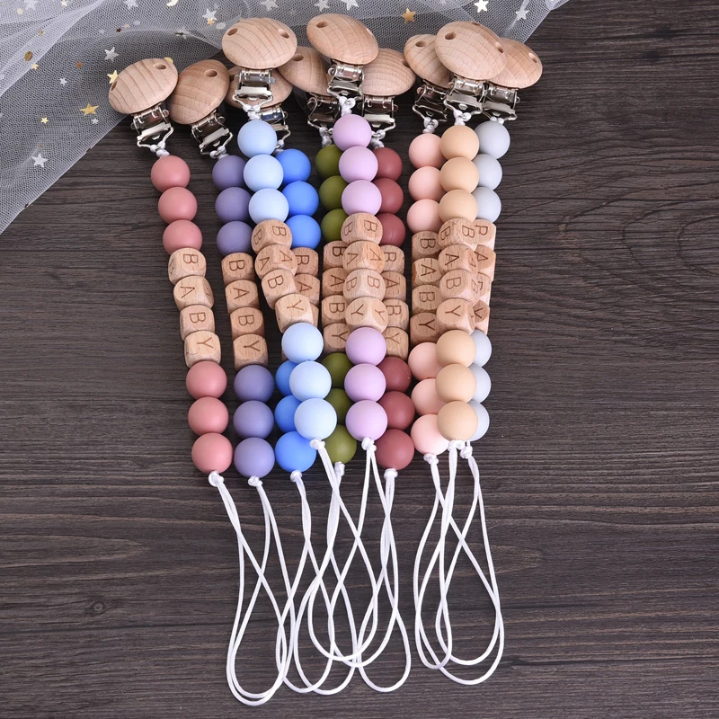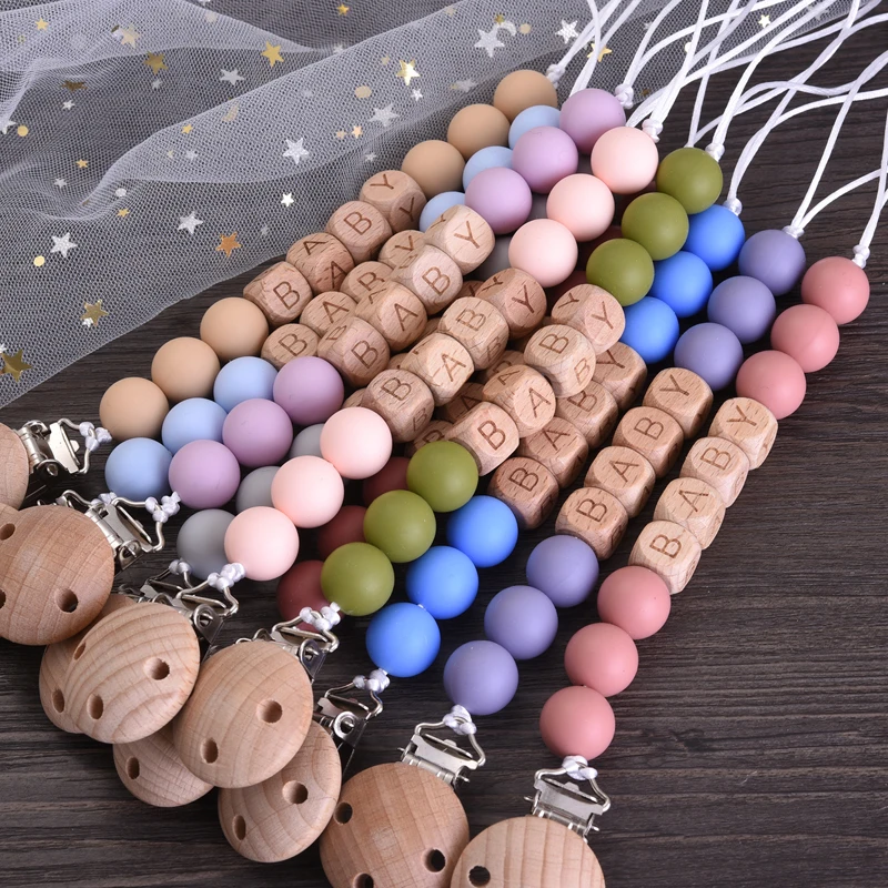 Personalized Name Wood Baby Pacifier Clip Silicone Round Beads Nipple Chain Teether Infant Dummy Holder Chain Baby Nursing Toy