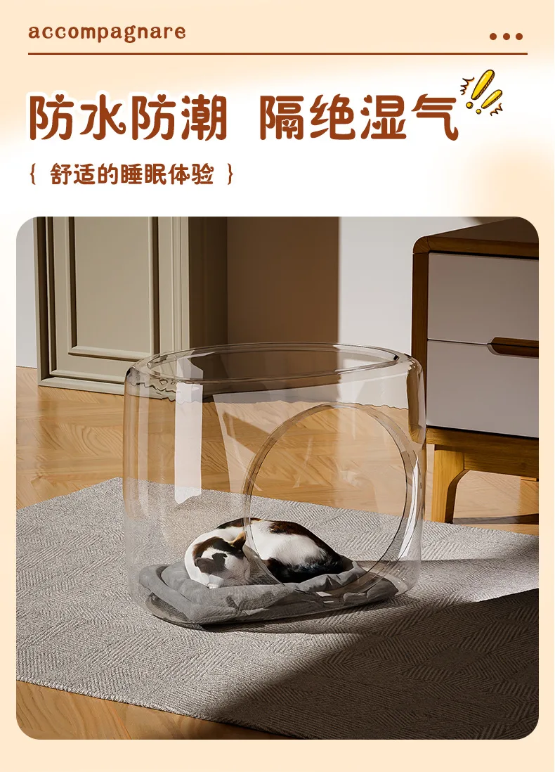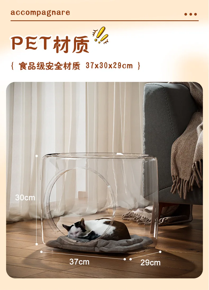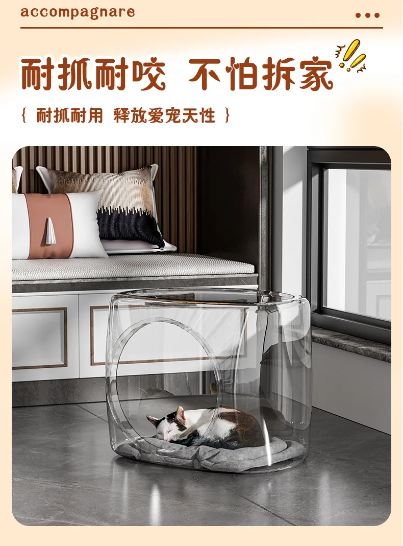 Pet Bed Cattery Transparent Space Capsule Tree Hole Cat Cage Semi-enclosed Pet House Ventilate Moisture-proof All-season