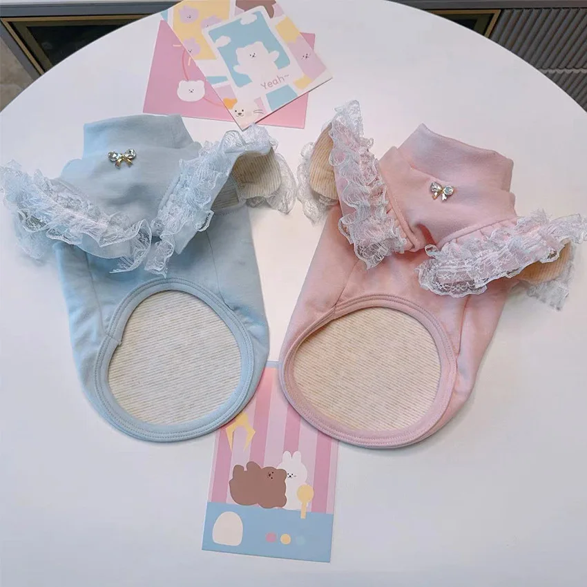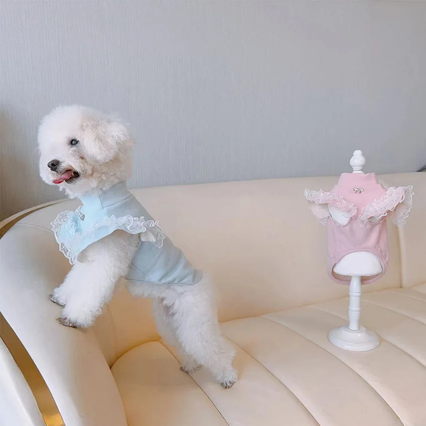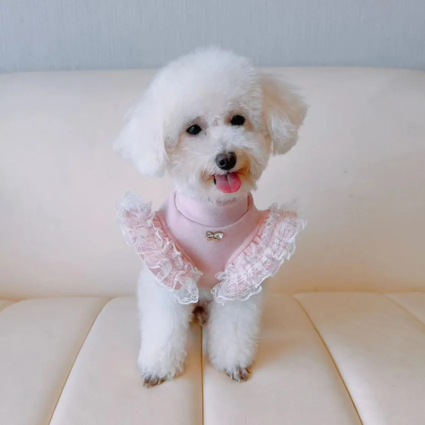 Pet Clothing Autumn and Winter Base Shirt Lace Flying Sleeves Ladies Base Vest Small Teddy Bear Dog Clothes for Small Dogs