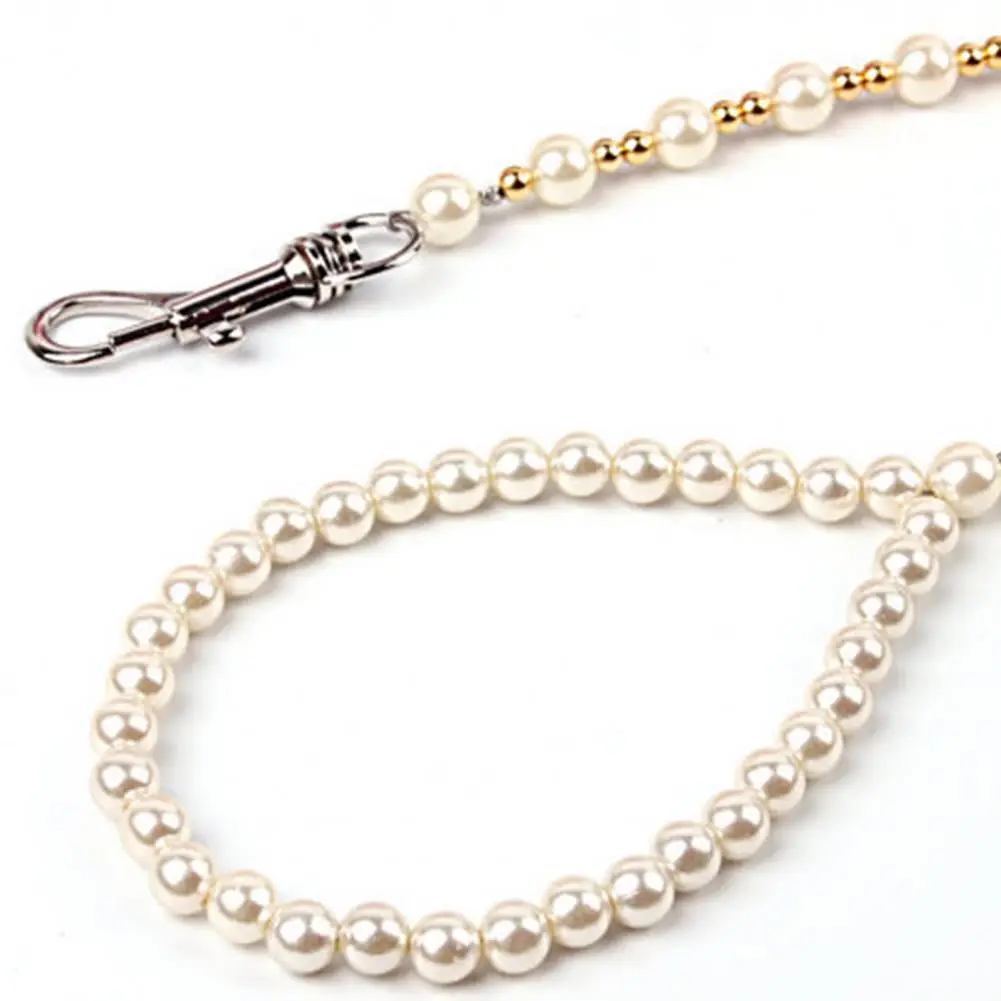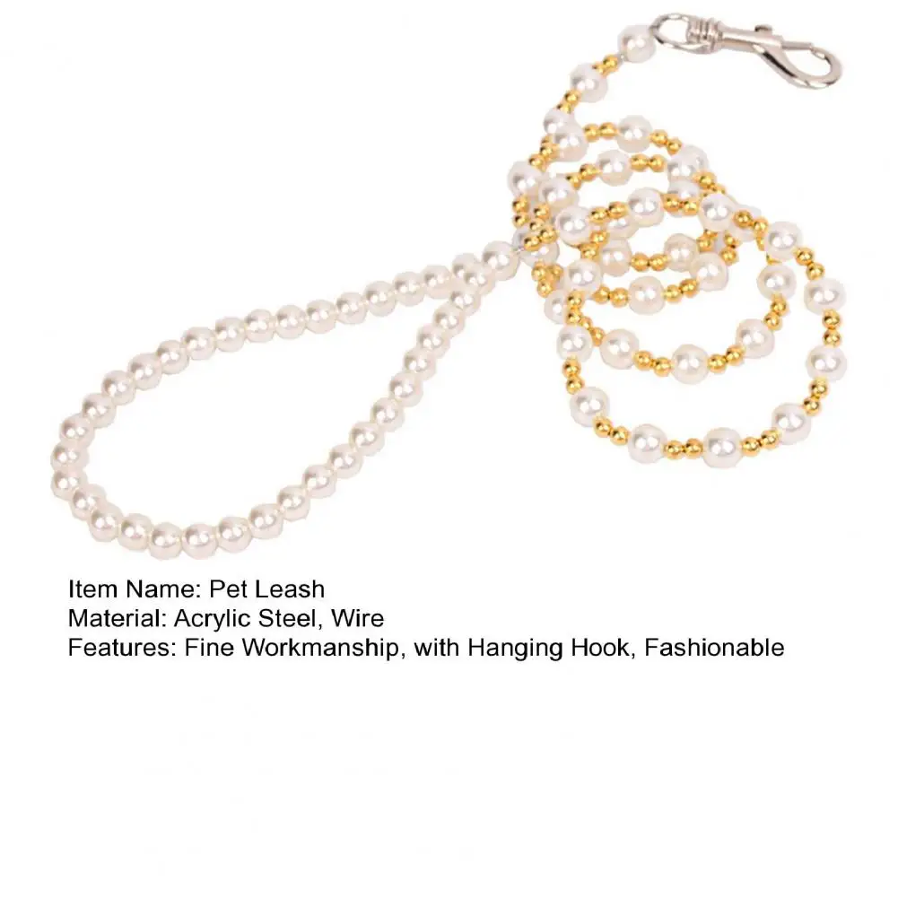 Pet Leash Elegant Pearl Beaded Dog Harness Leash Set for Small Pets Stylish Walking Traction with Fine Workmanship Fashionable