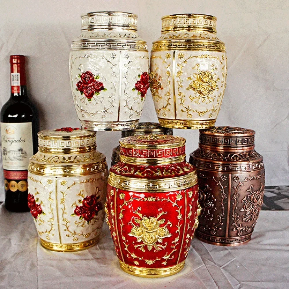 Pet Memorial Keepsake Container for Ashes Tea Canister Coffin Box for Human Ashes Metal Cremation Animal Urn Funeral Home Decor