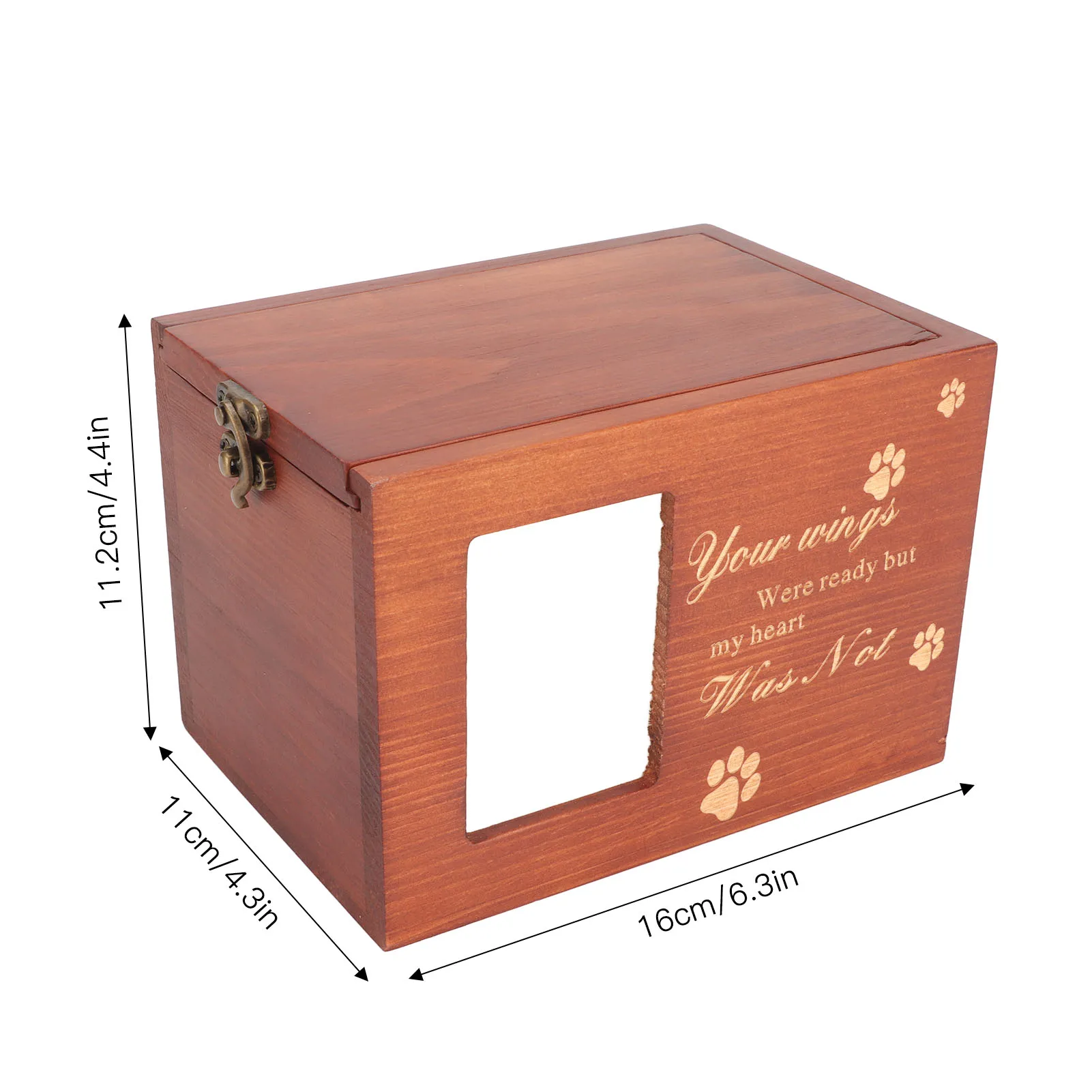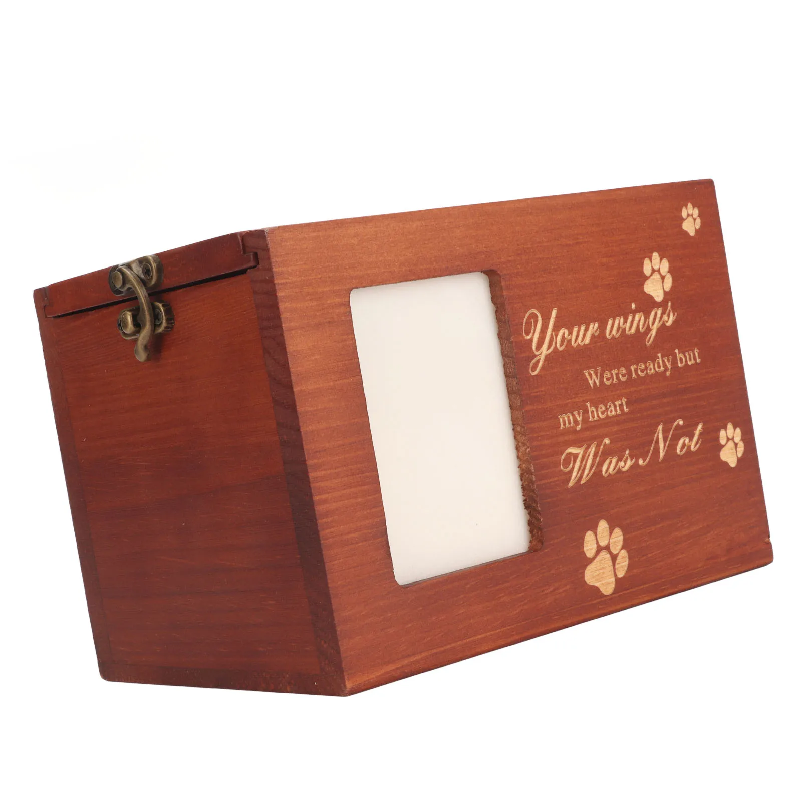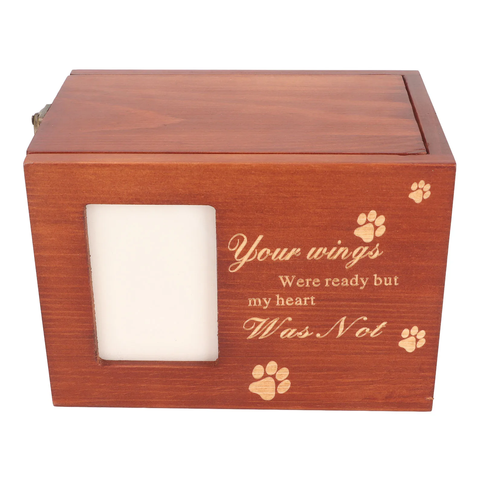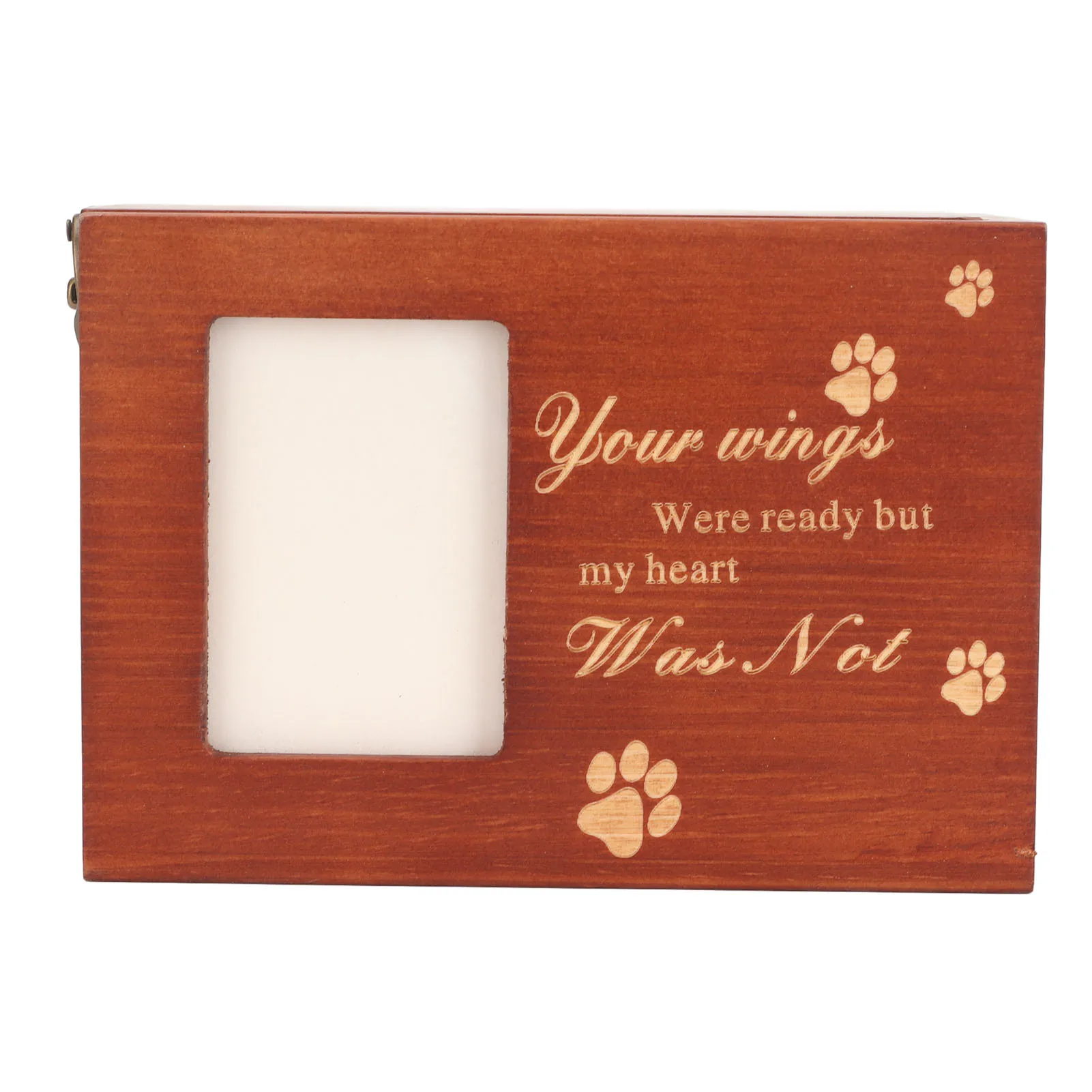Pet Wood Urn Box with Photo Frame Memorial Wooden Pet Ashes Casket with Carved Paw Pattern and Text for Dog Cat